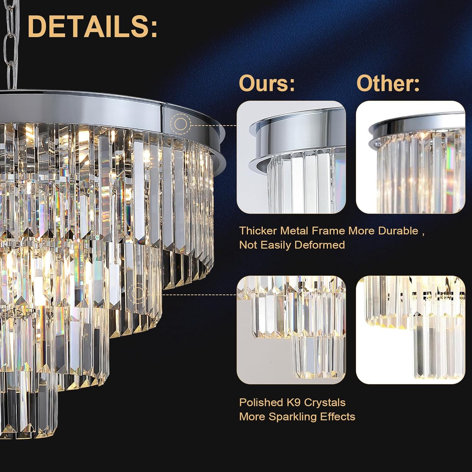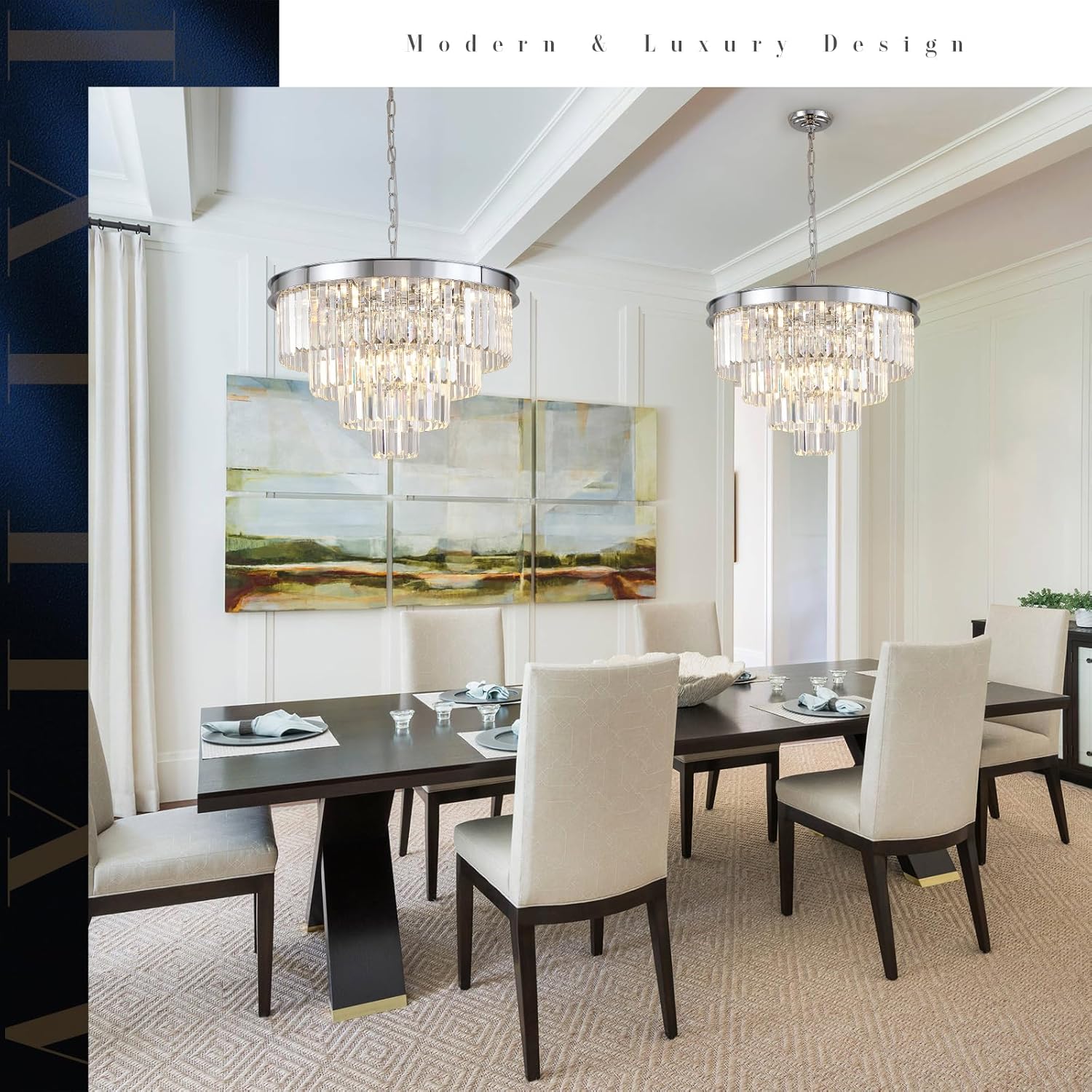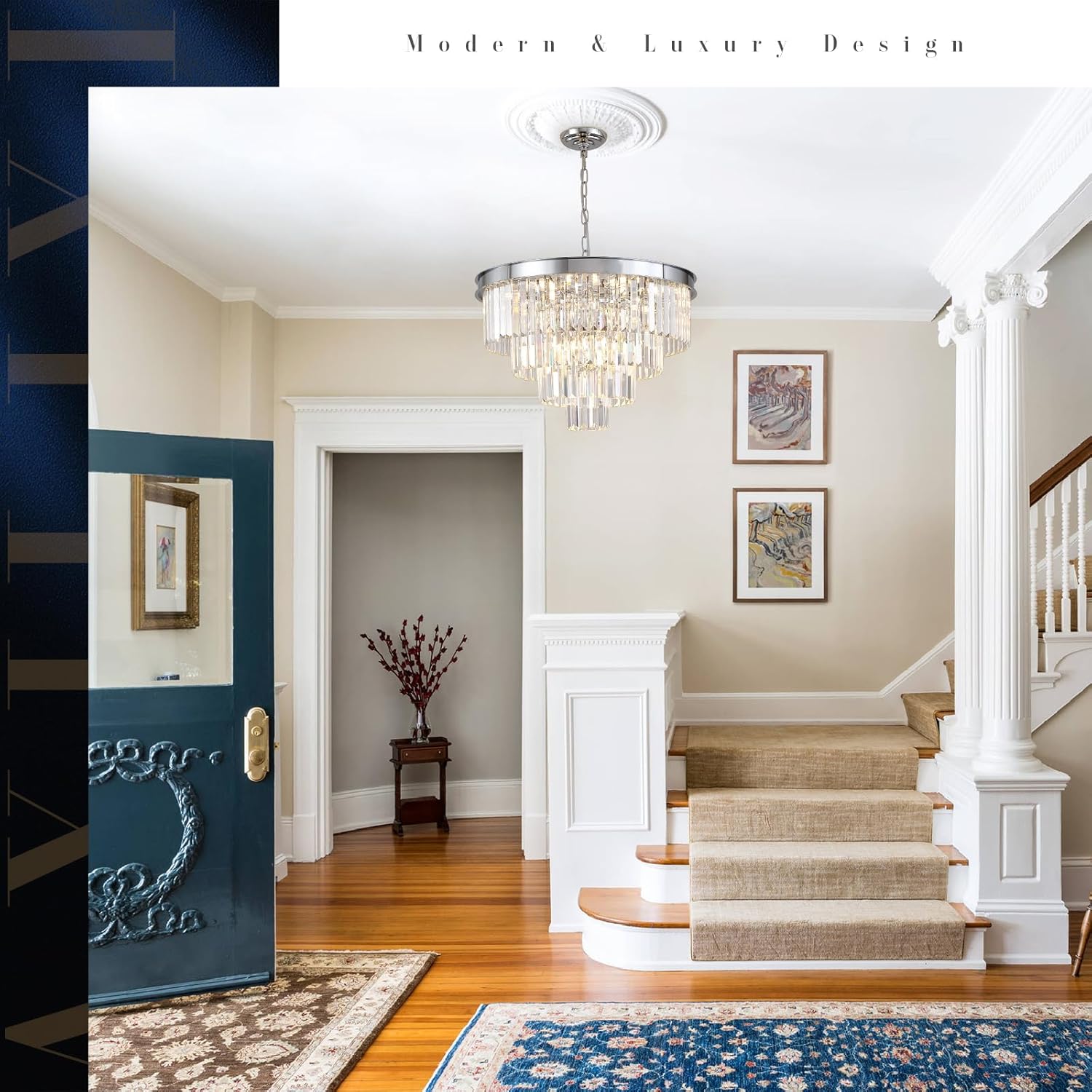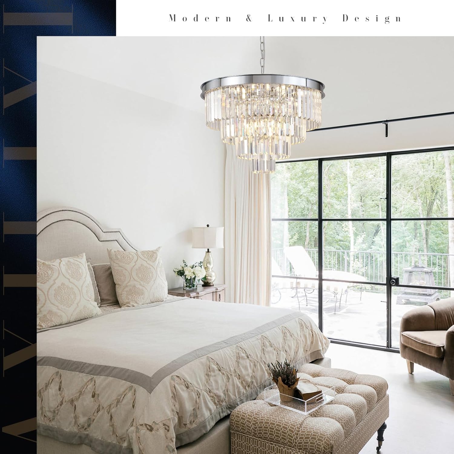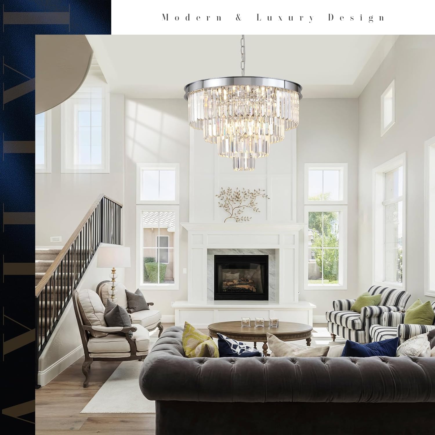 A AXILIXI Chrome Crystal Chandelier 24u201D Modern Chandelier for Dining Room Round Ceiling Pendant Light Fixture 4 Tiers 12 Lights Luxury Large Chandelier for Entryway Living Room Bedroom