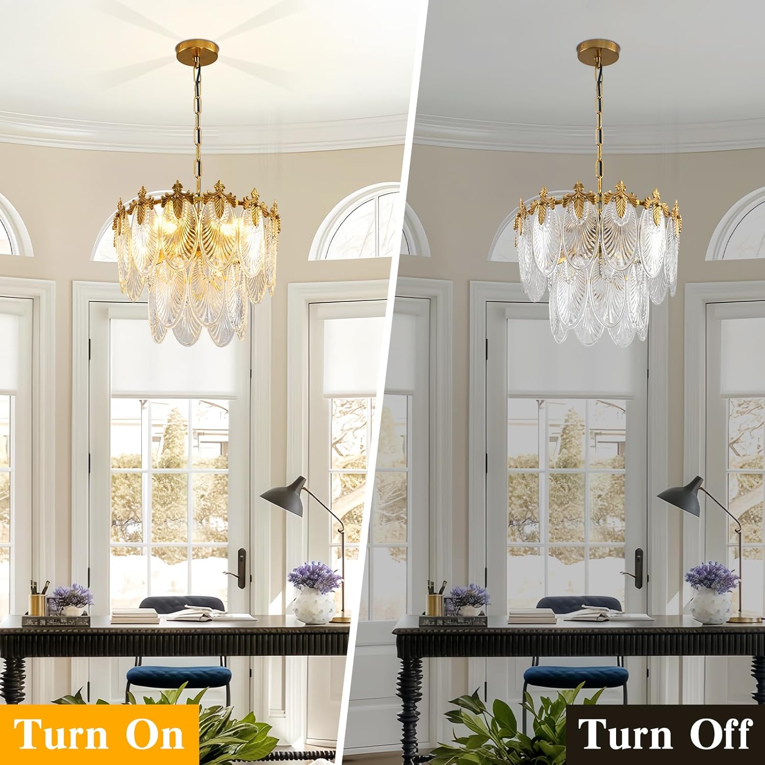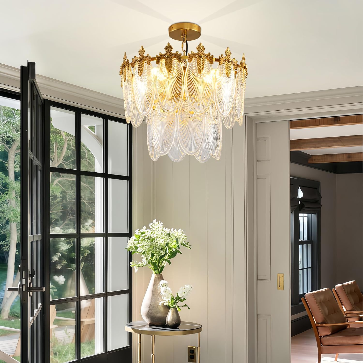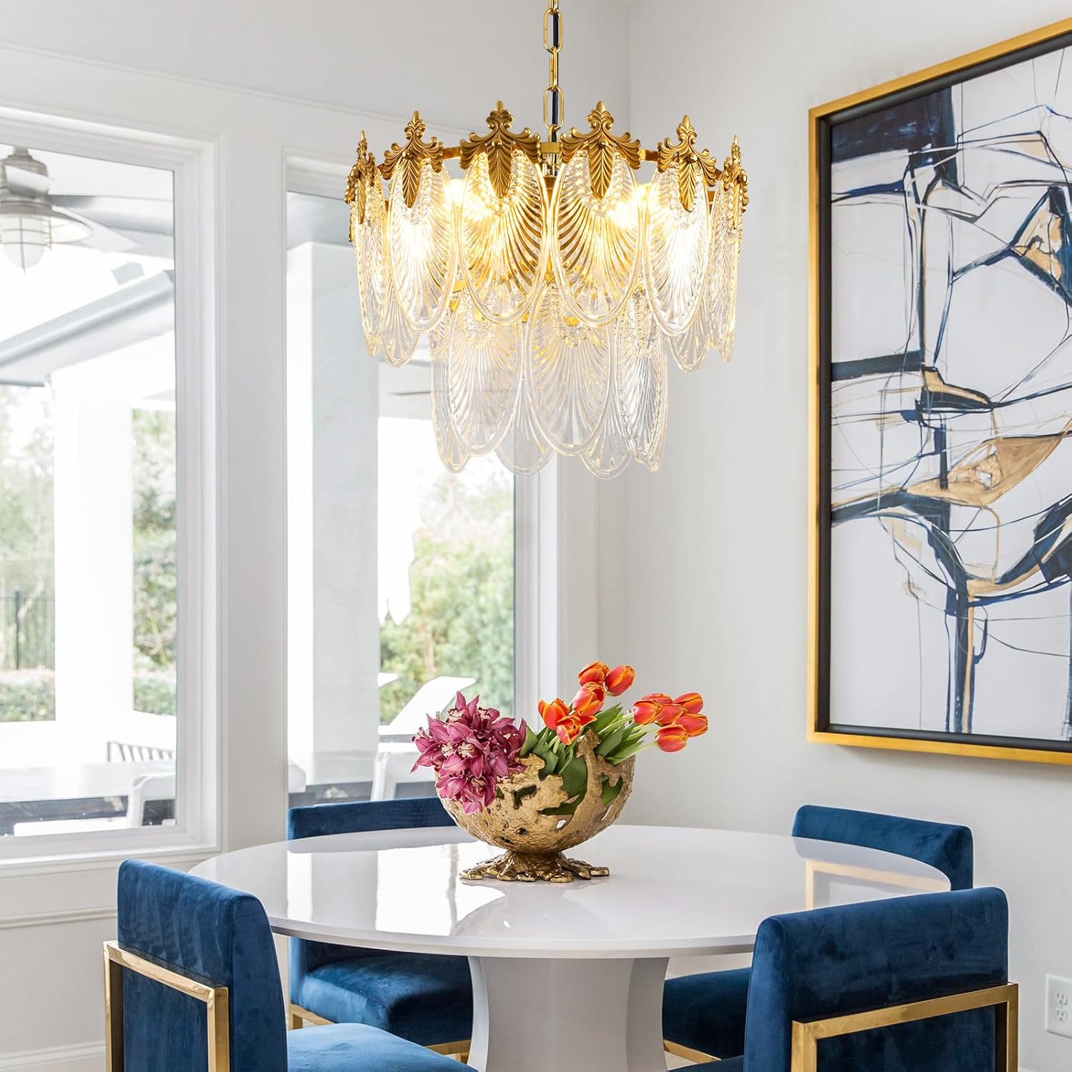 Antique Chandeliers 2-Layer Gold Crystal Glass Chandelier, 4-Light Round Pendant Light 17.7″ Brushed Brass Adjustable Height, Applicable to Dining Room, Bedroom, Living Room, Foyer, Kitchen Island