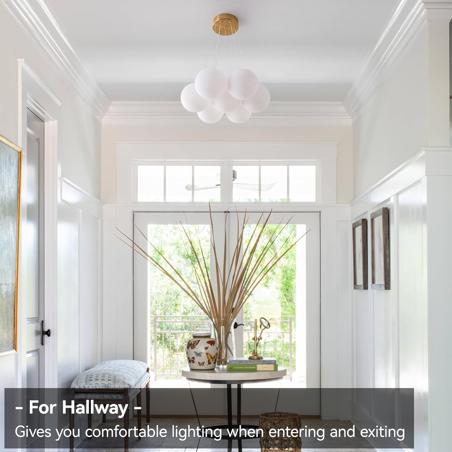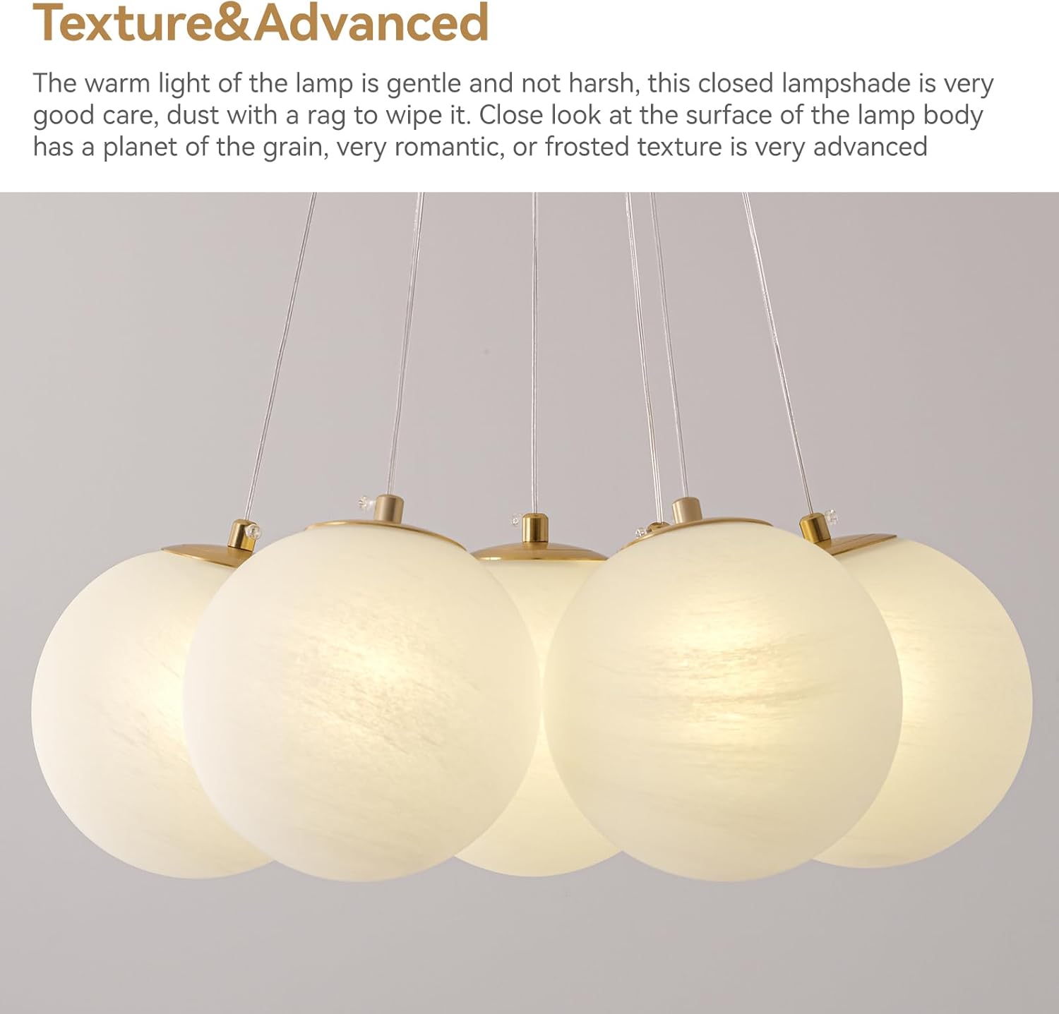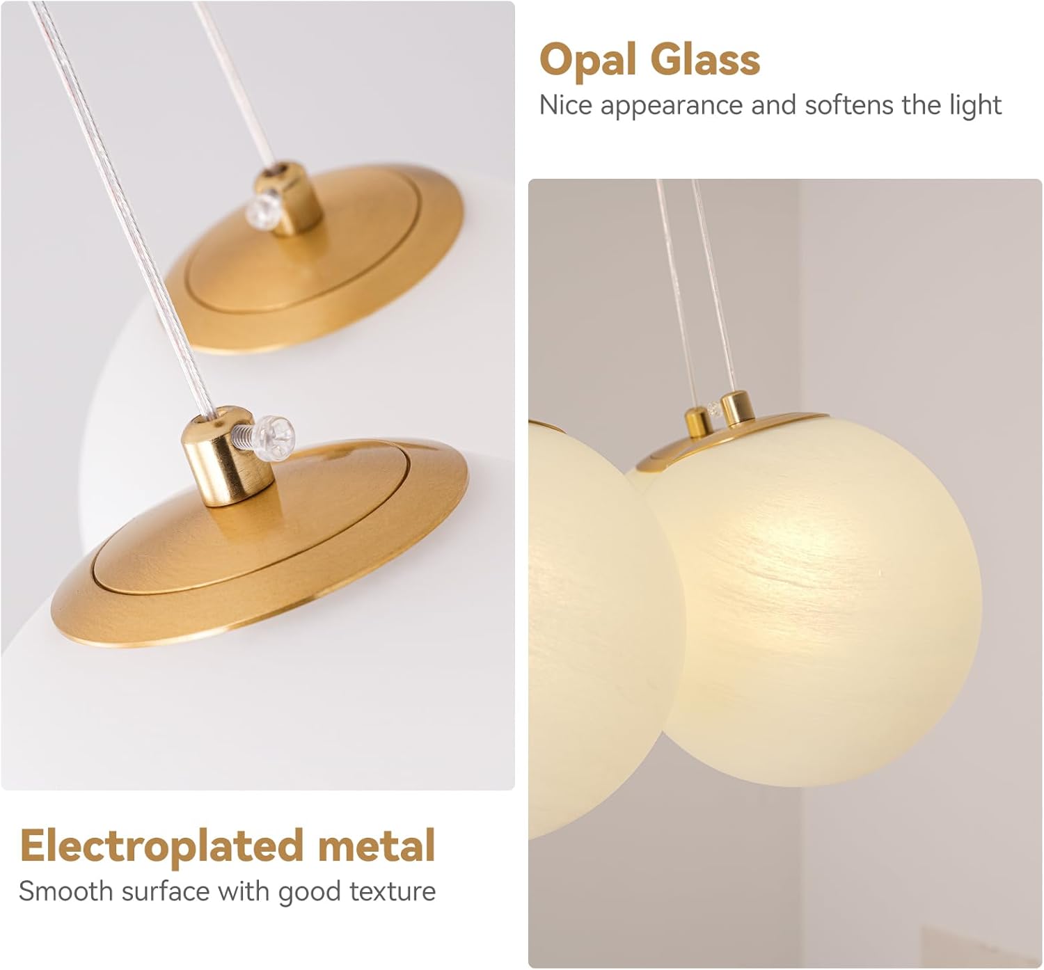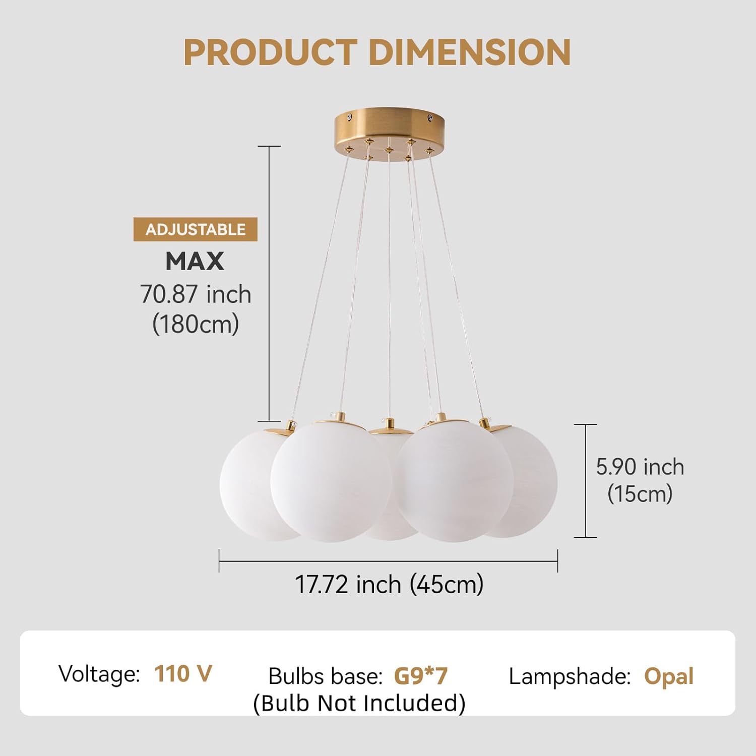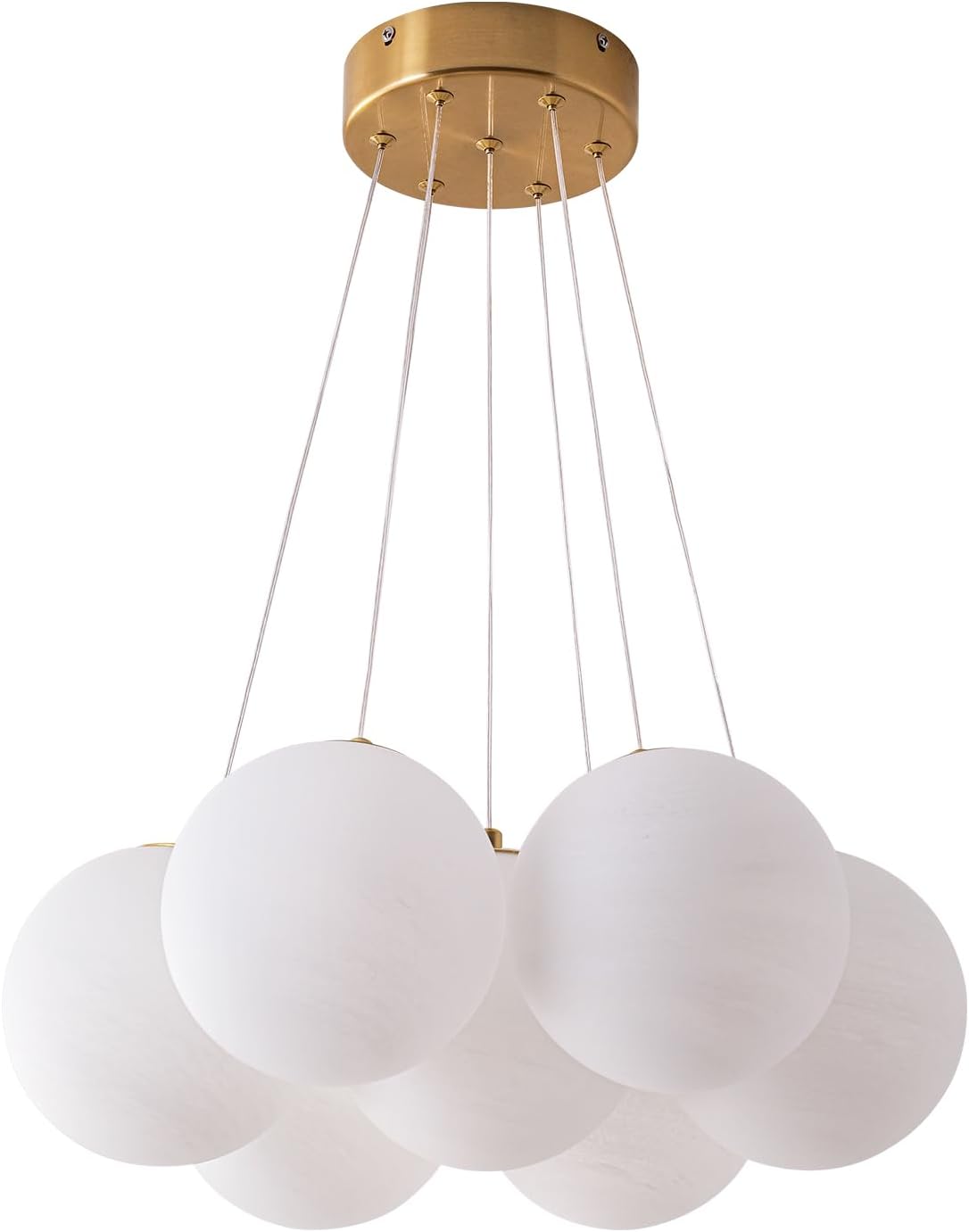 Boho Caged 7-Lights Milk Glass Bubble Chandeliers Lighting, Modern Nordic Large Globe Chandelier Mid-Century Ball Pendant Light Fixture for Bedroom, Living Room, Dining Room, Entry, Island