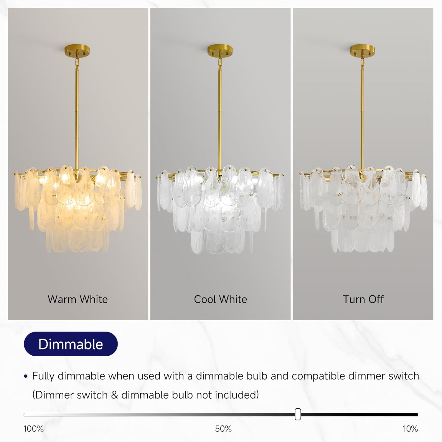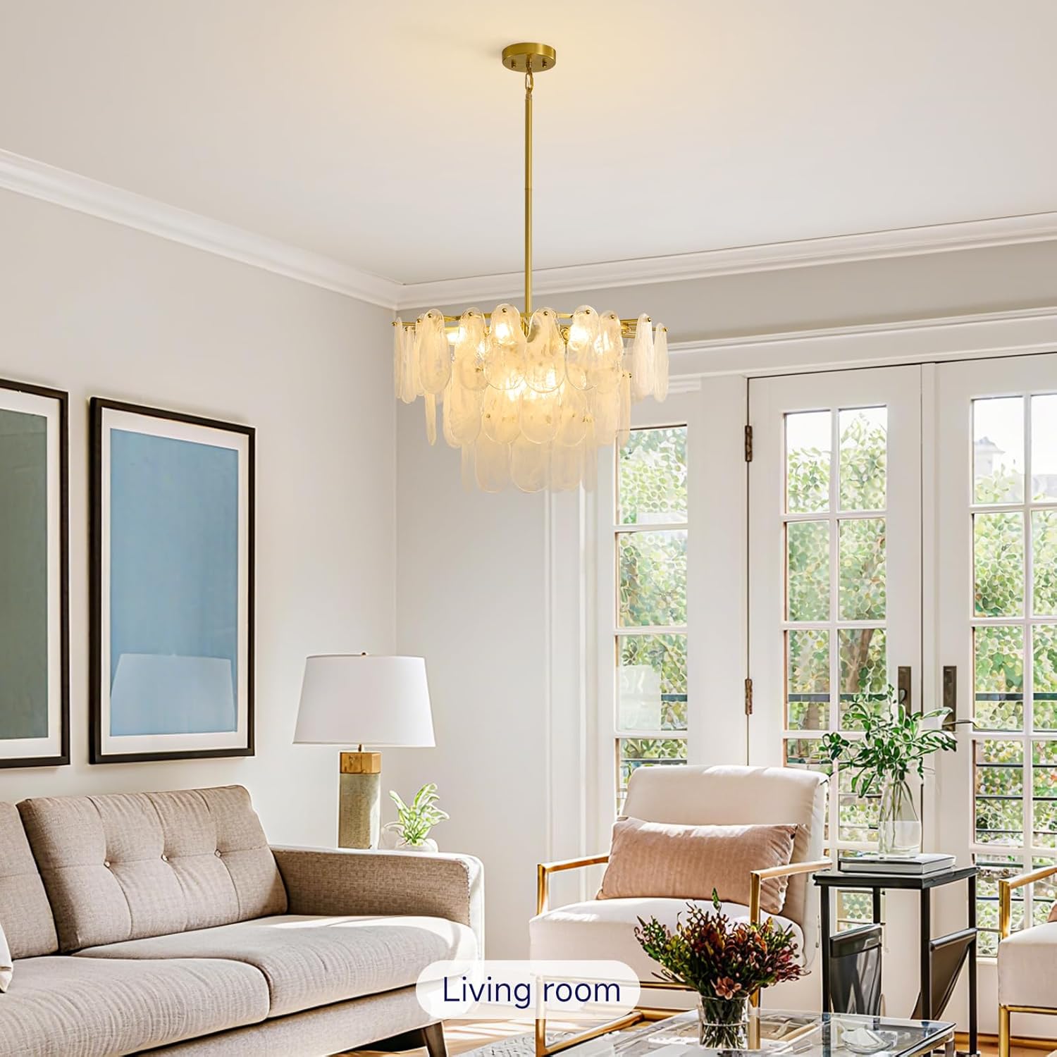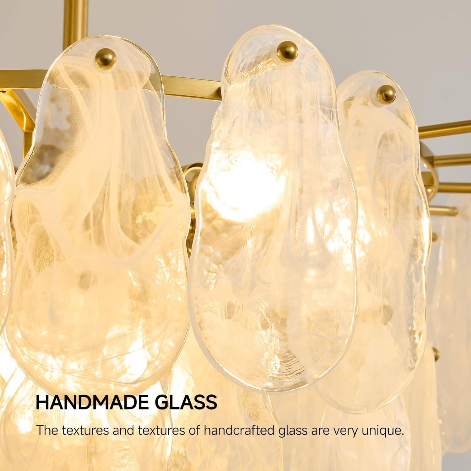 Brushed Gold Chandeliers for Dining Room: 23.6″ Kitchen Chandelier Over Table – 3 Tier Modern Round Cloud Glass Hanging Light Fixtures – Luxury Crystal Pendant Lights for Living Room Bedroom Entryway