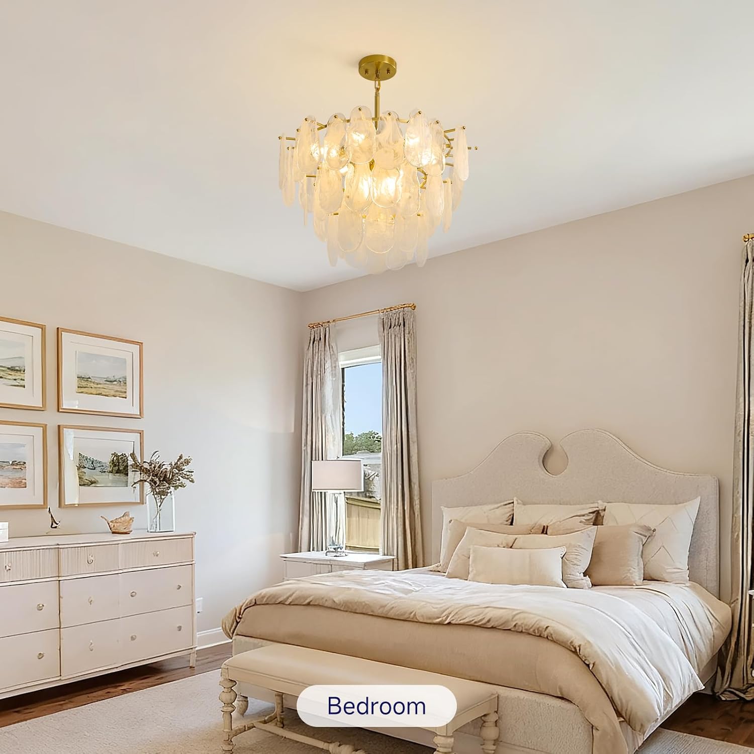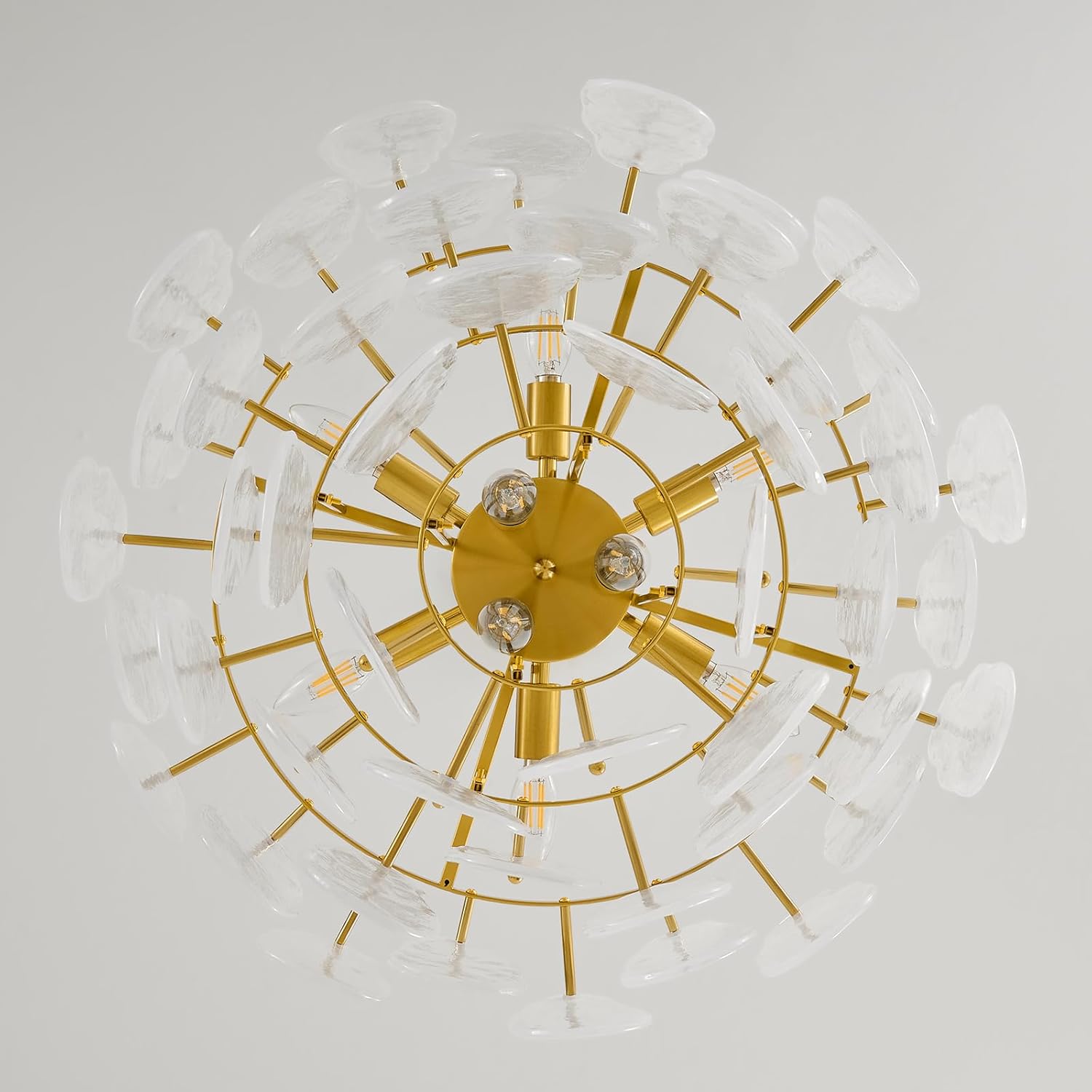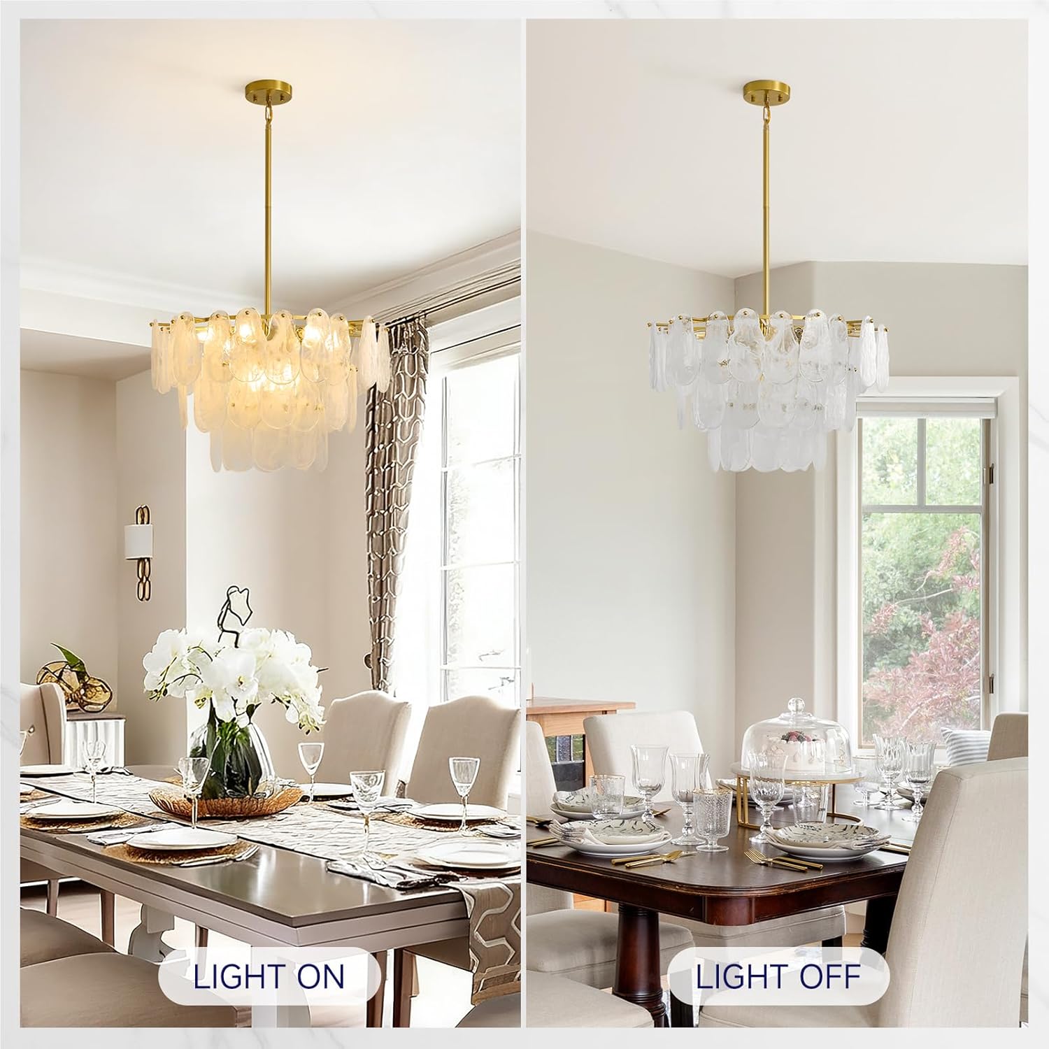 Brushed Gold Chandeliers for Dining Room: 23.6″ Kitchen Chandelier Over Table – 3 Tier Modern Round Cloud Glass Hanging Light Fixtures – Luxury Crystal Pendant Lights for Living Room Bedroom Entryway