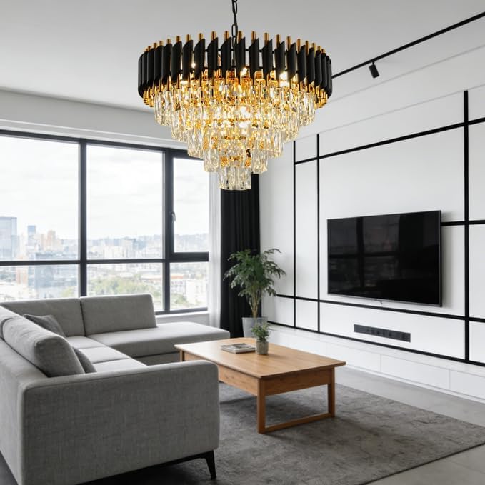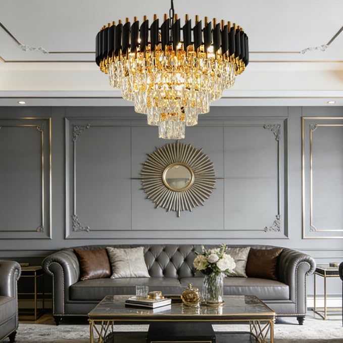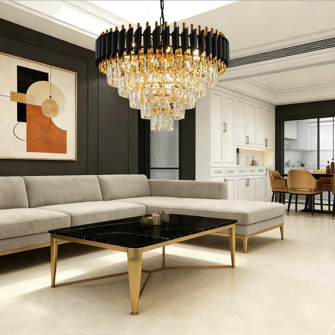 Illuminate your space with a 20in 4-tier crystal chandelier, where every facet sparkles, enhancing your home's elegance and charm.