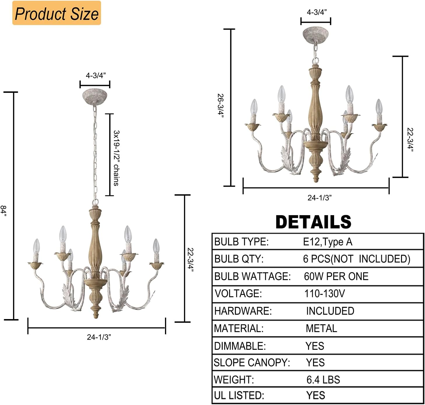 French Country Chandelier,6-Light Distressed Antique Brown Metal Farmhouse Chandelier for Dining Room Light Fixture Candle Pendant Light Fixtures Hanging for Kitchen Island Living Room Bedroom
