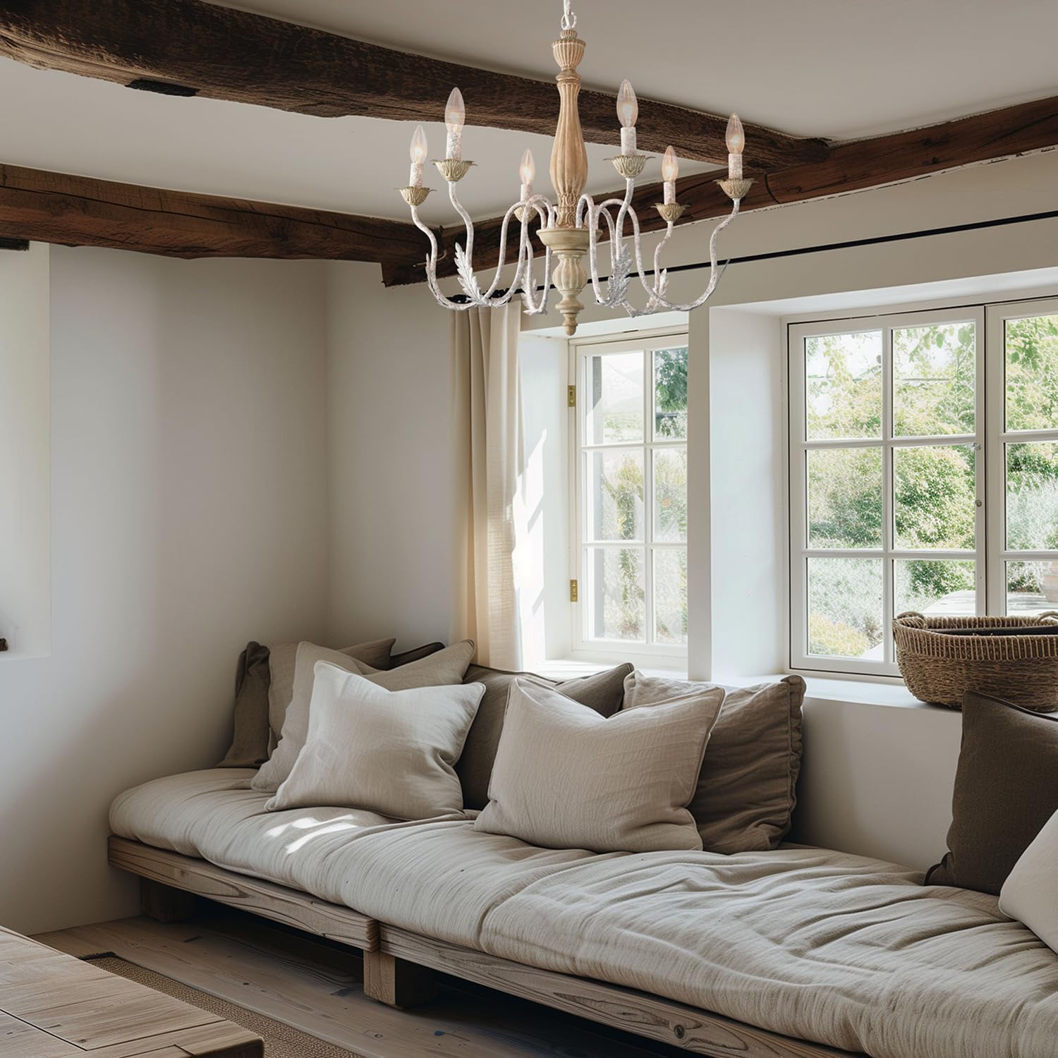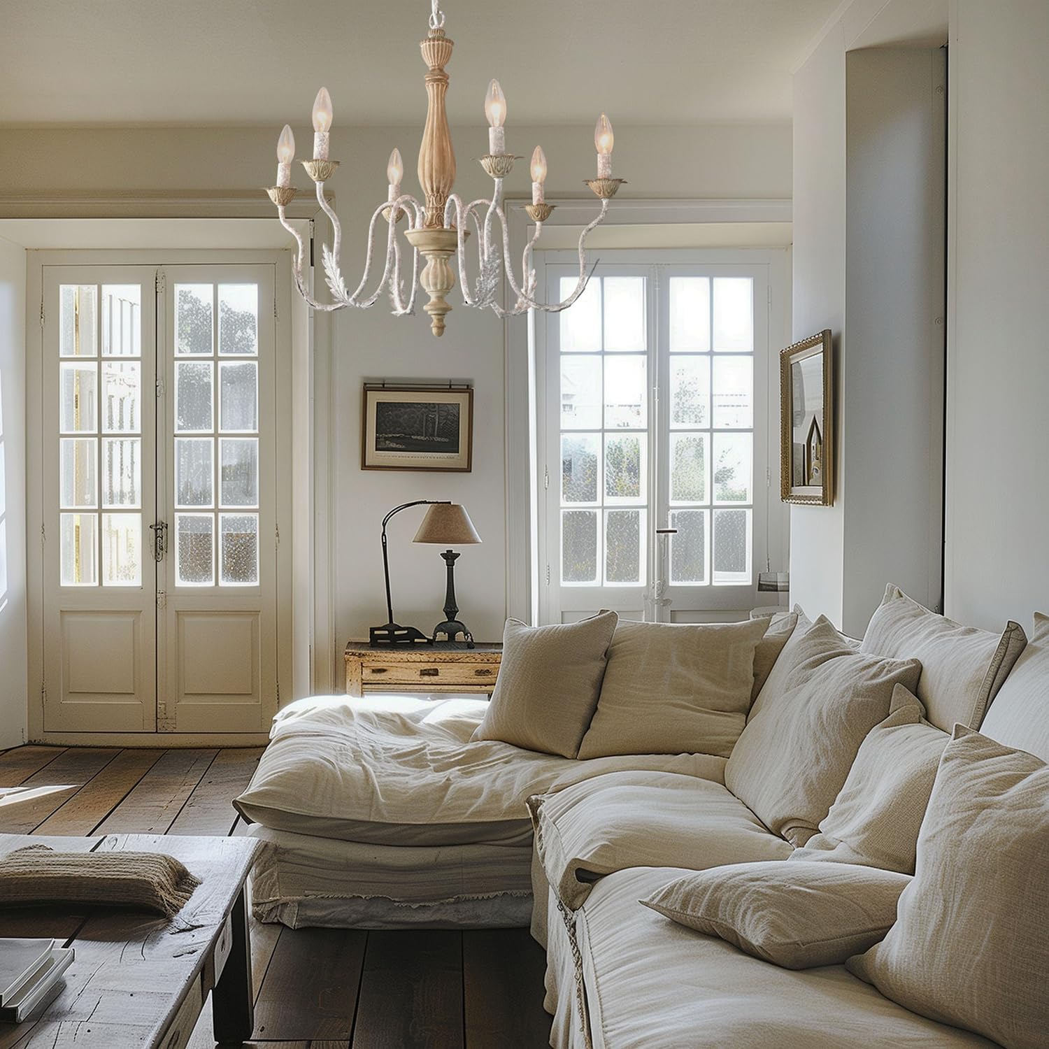 French Country Chandelier,6-Light Distressed Antique Brown Metal Farmhouse Chandelier for Dining Room Light Fixture Candle Pendant Light Fixtures Hanging for Kitchen Island Living Room Bedroom