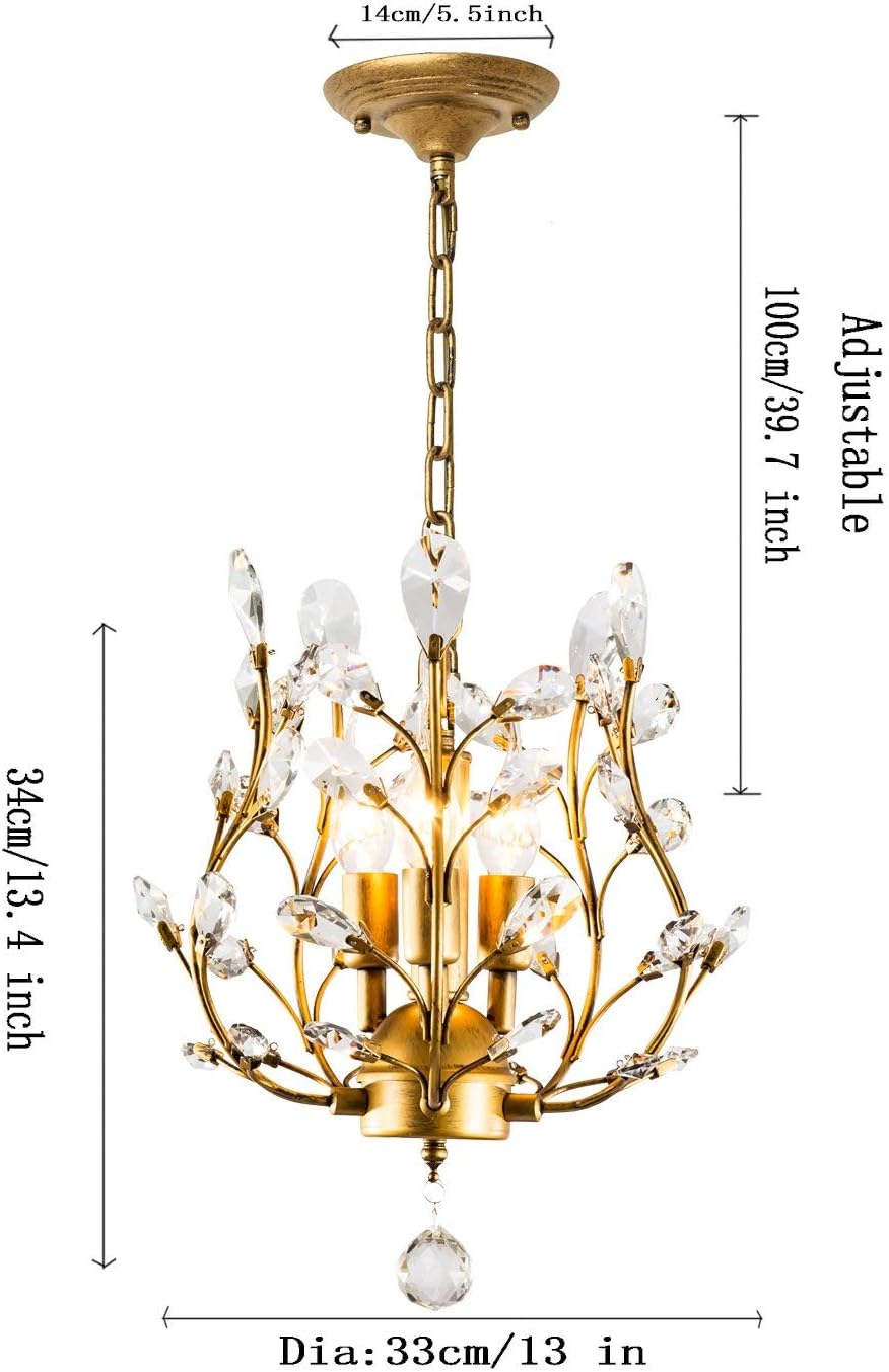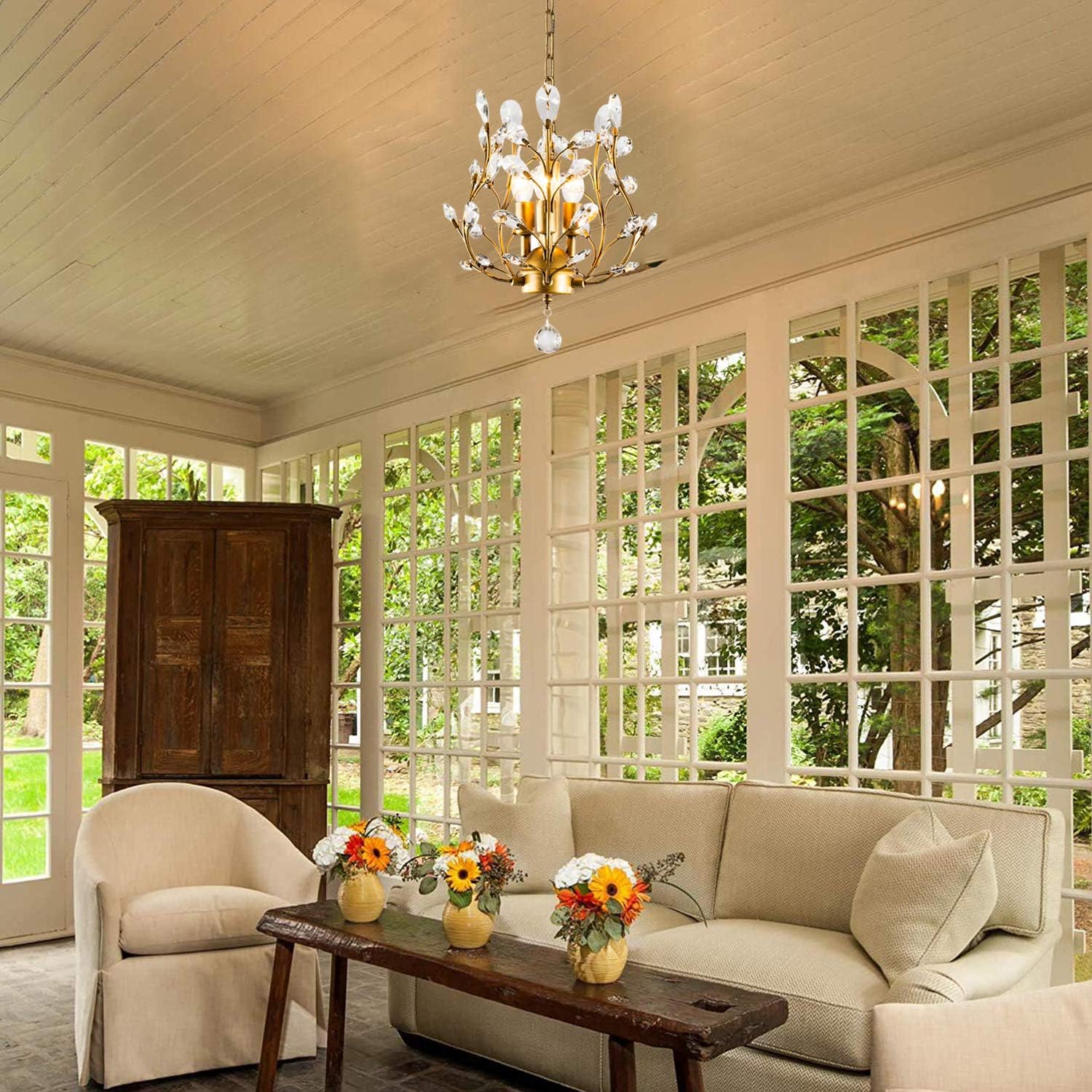 Garwarm 3-Light Crystal Chandeliers,Ceiling Lights,Crystal Pendant Lighting,Ceiling Light Fixtures for Living Room Dining Room Bedroom Restaurant Porch(Gold)