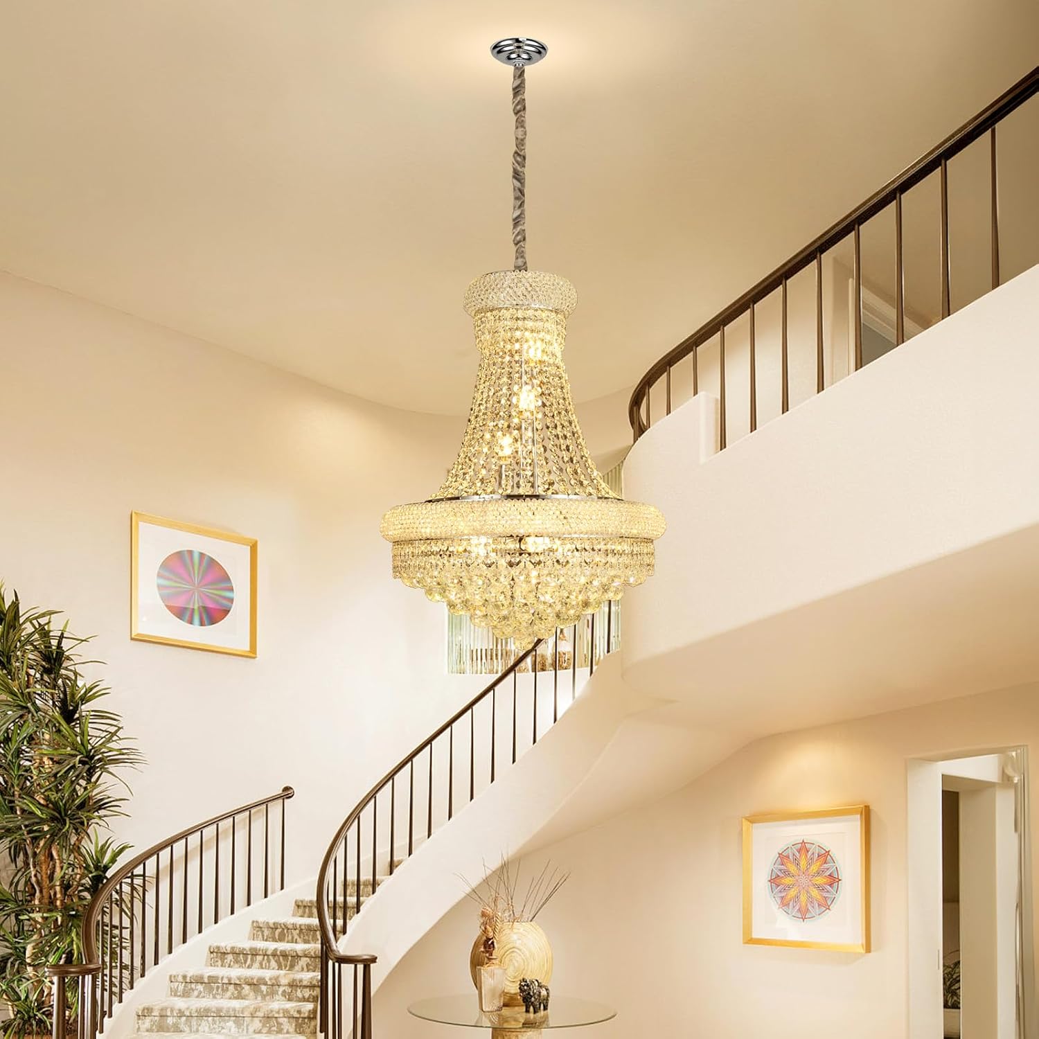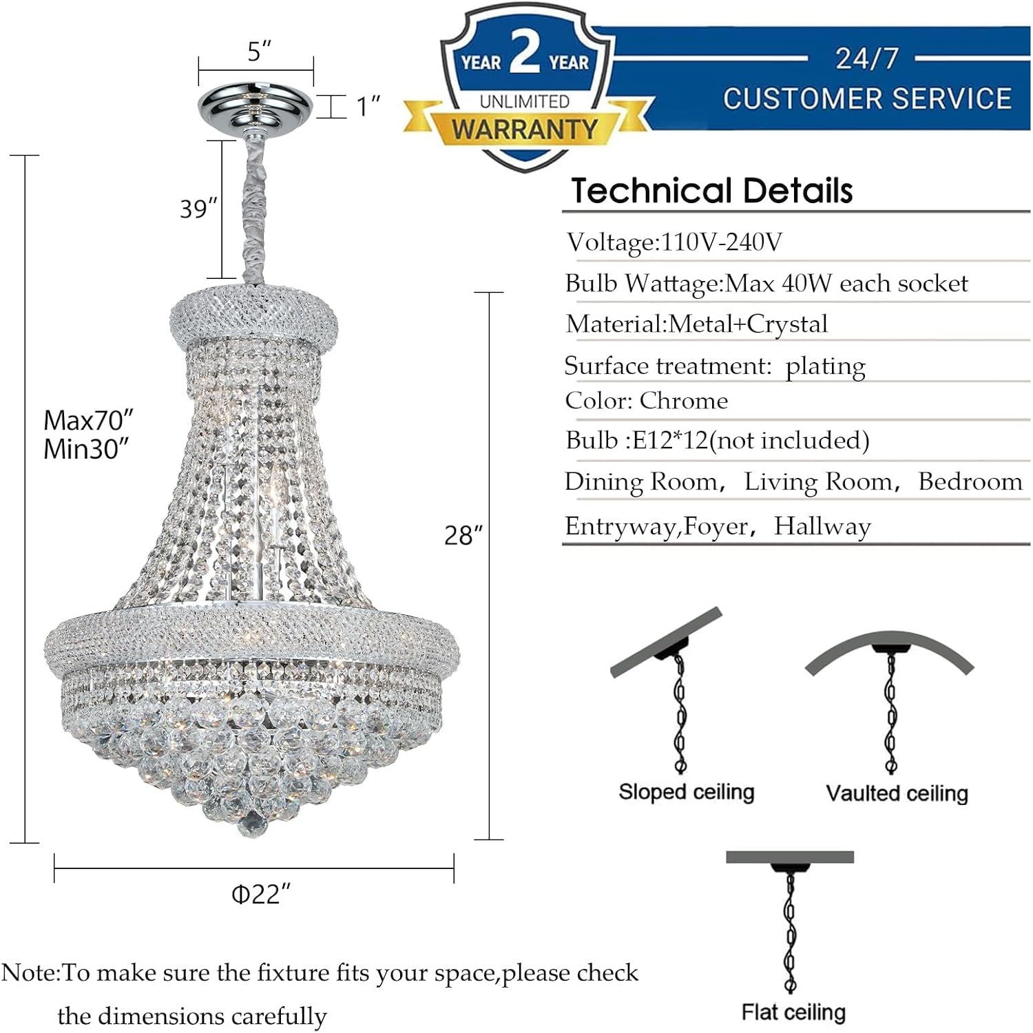 Gifarich Crystal Chandeliers for Dining Room Light Fixture,Empire Style K9 Crystal Chandeliers for Entryway,12 Lights Chrome Luxury Lighting Fixtures for Living Room Stairway Bedroom Foyer D22 Inch