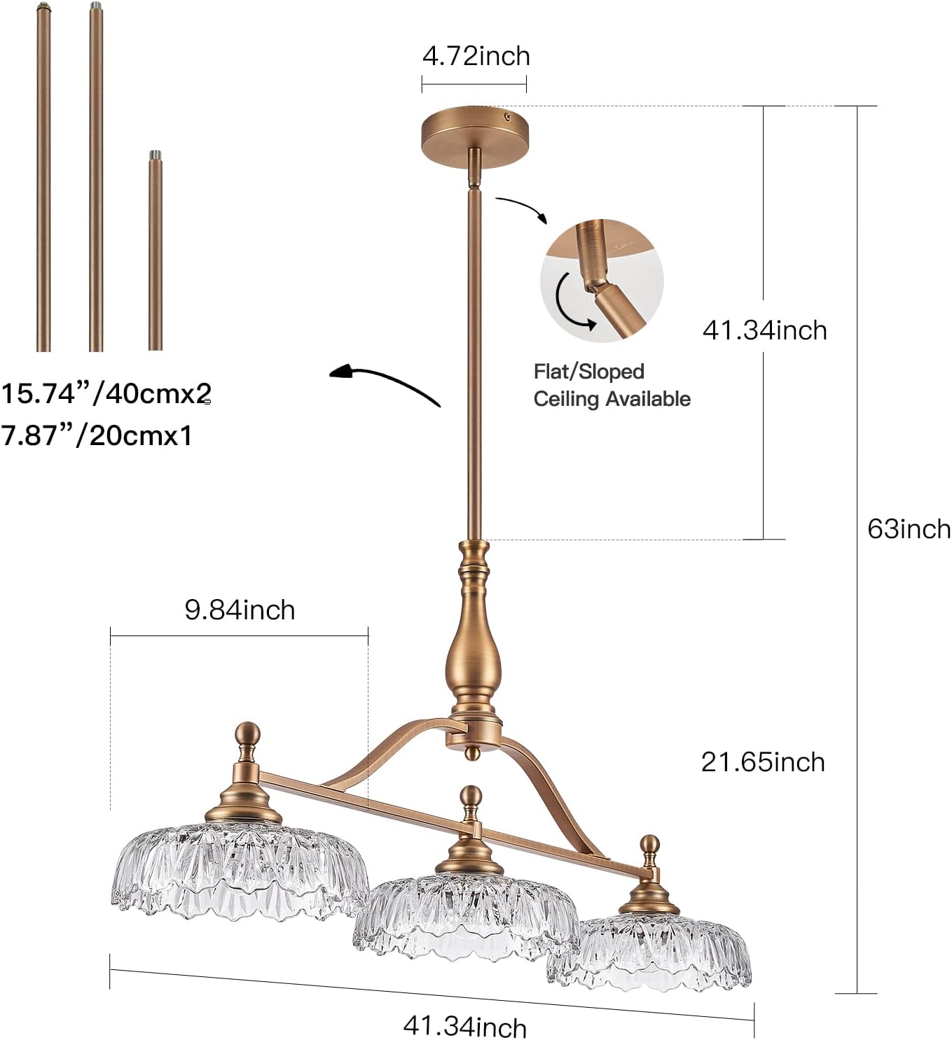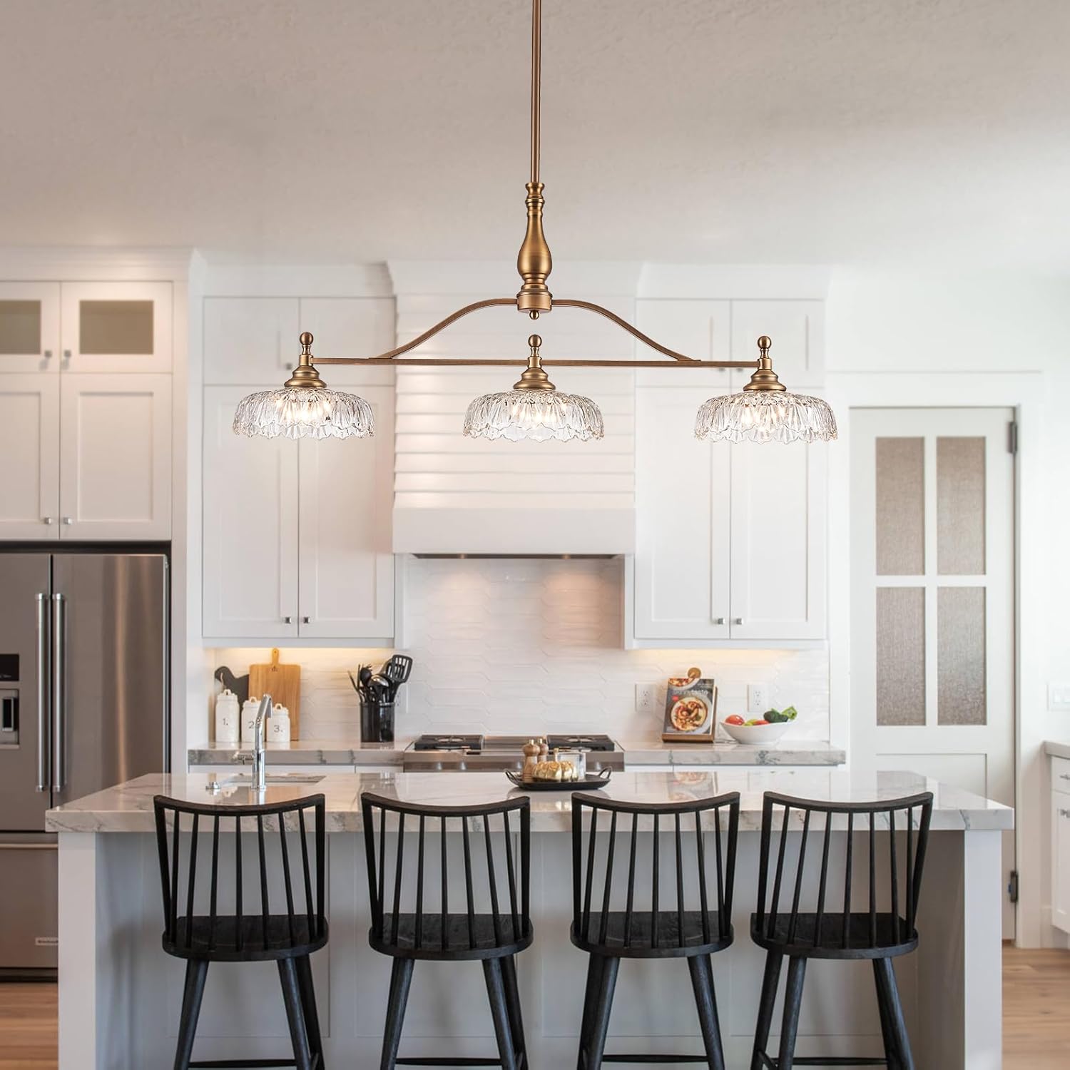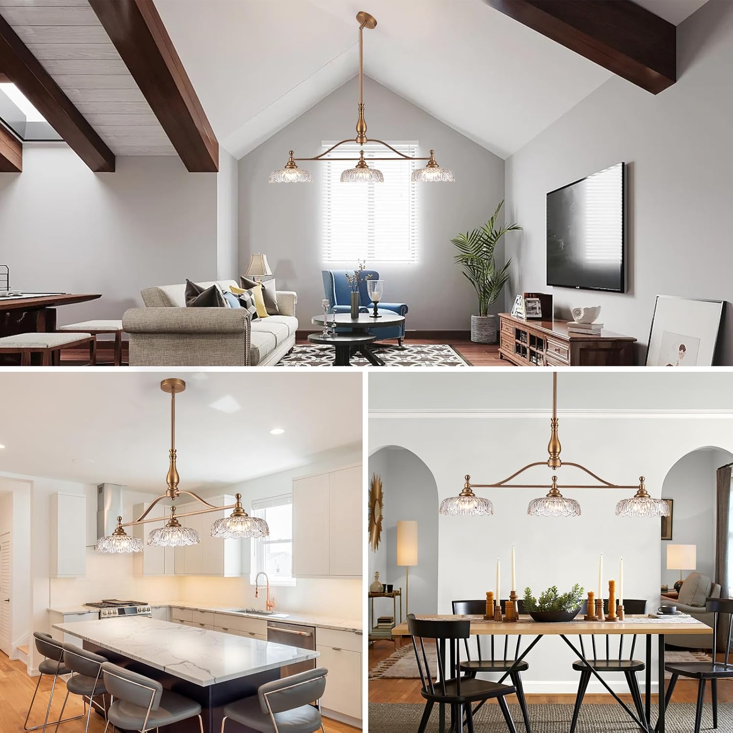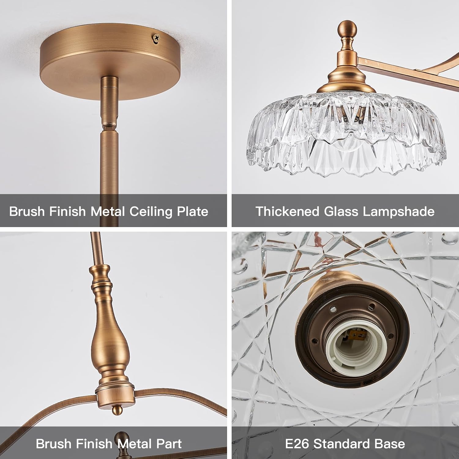 HDDFL Chandeliers Pendant Light Fixture Vintage Pendant Lighting Fixtures 3 Lights Chandelier Matte Brass Kitchen Glass Hanging Lamp for Island Dining Room Living Room