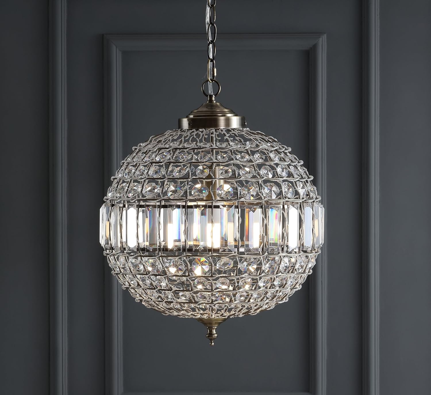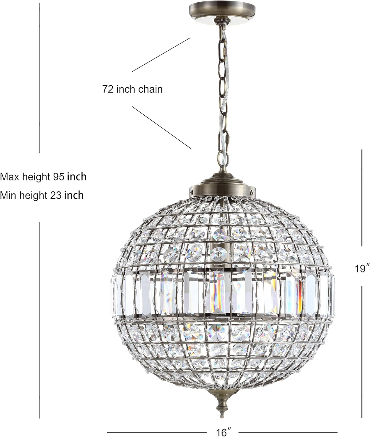 JONATHAN Y JYL6110B Georgina Crystal/Metal LED Chandelier Pendant Glam Contemporary Transitional Dimmable Dining Room Living Room Kitchen Foyer Bedroom Hallway, 16″, Antique Brass/Clear