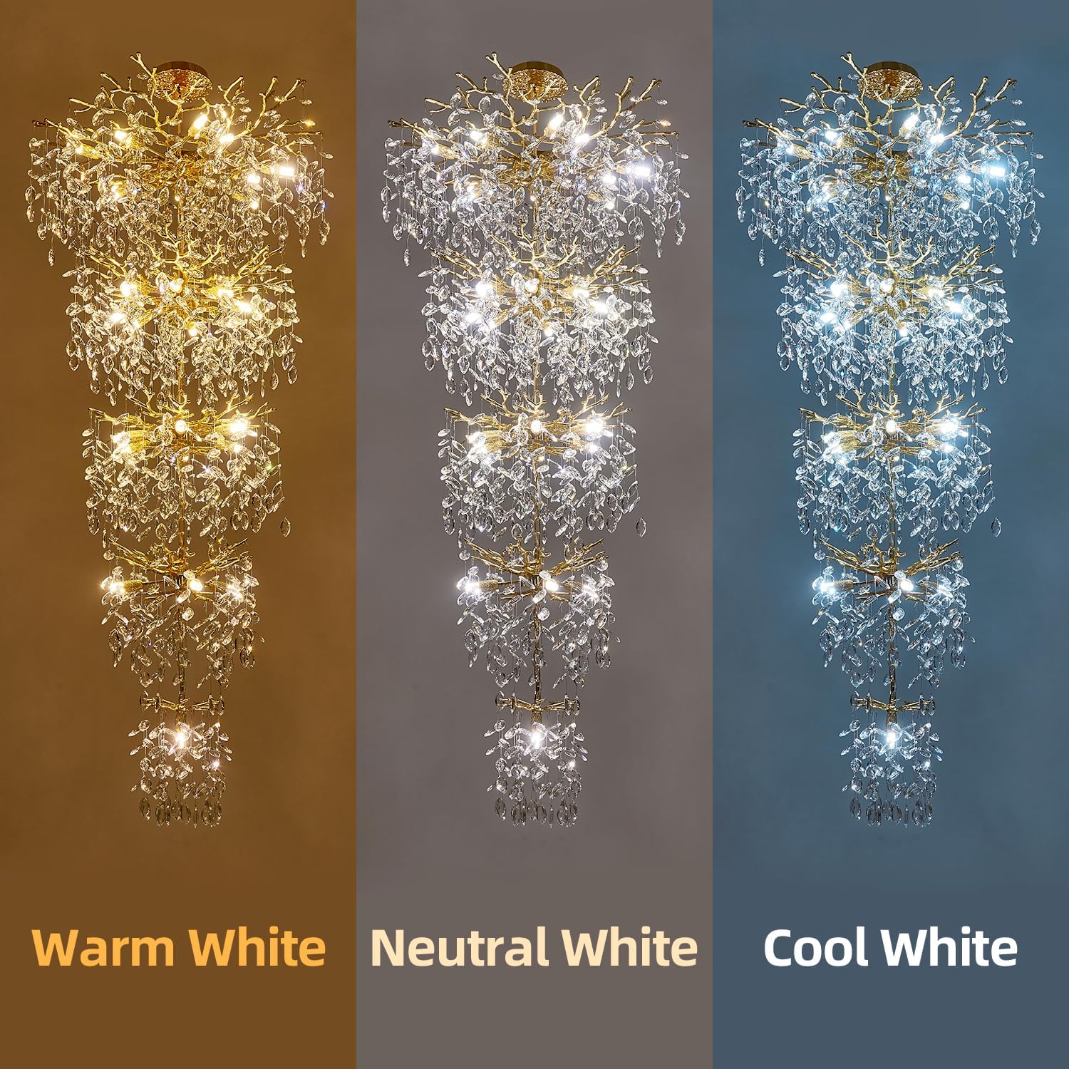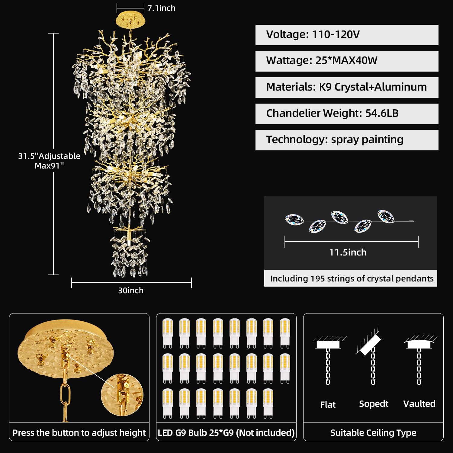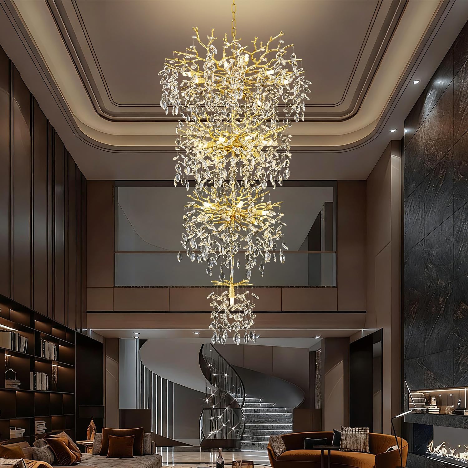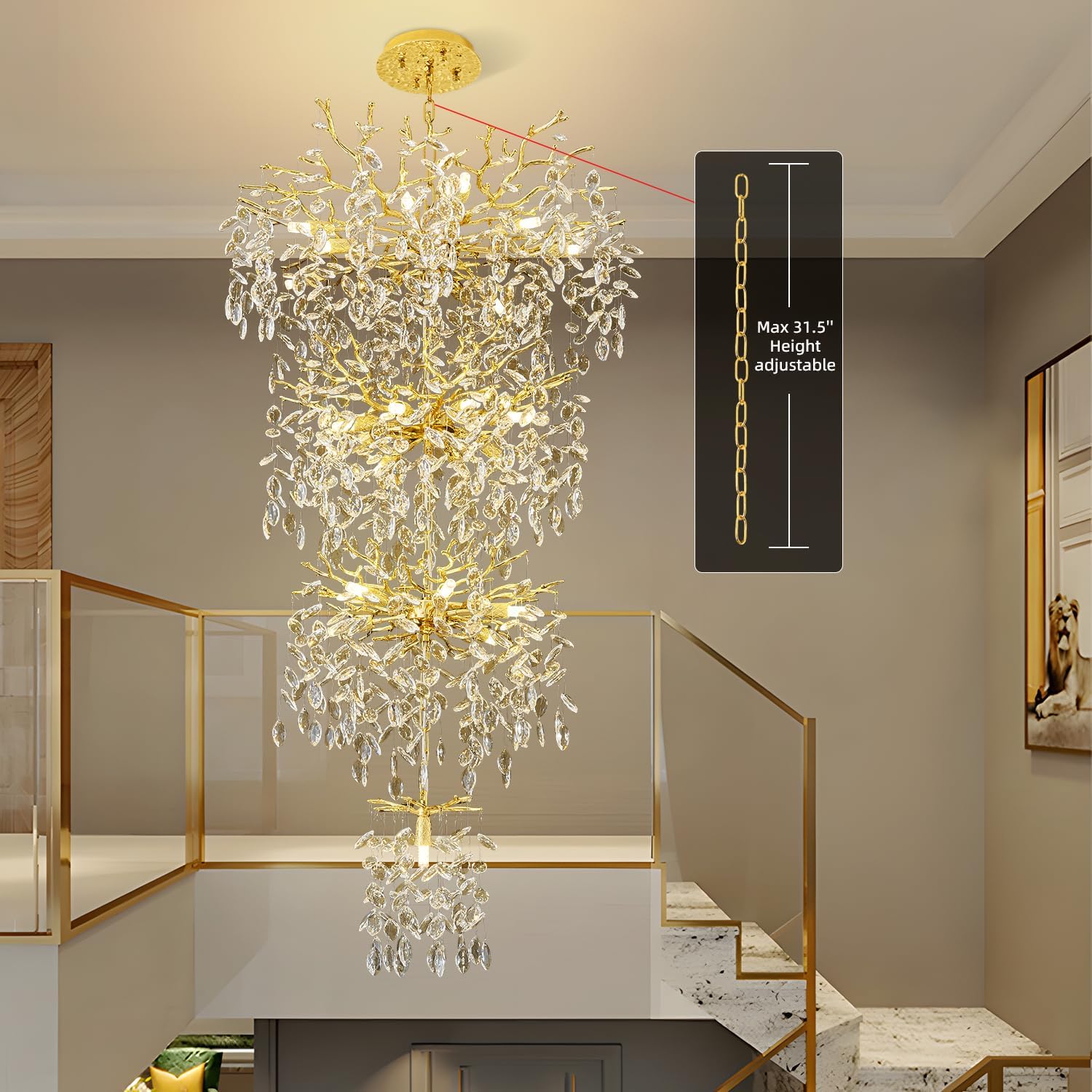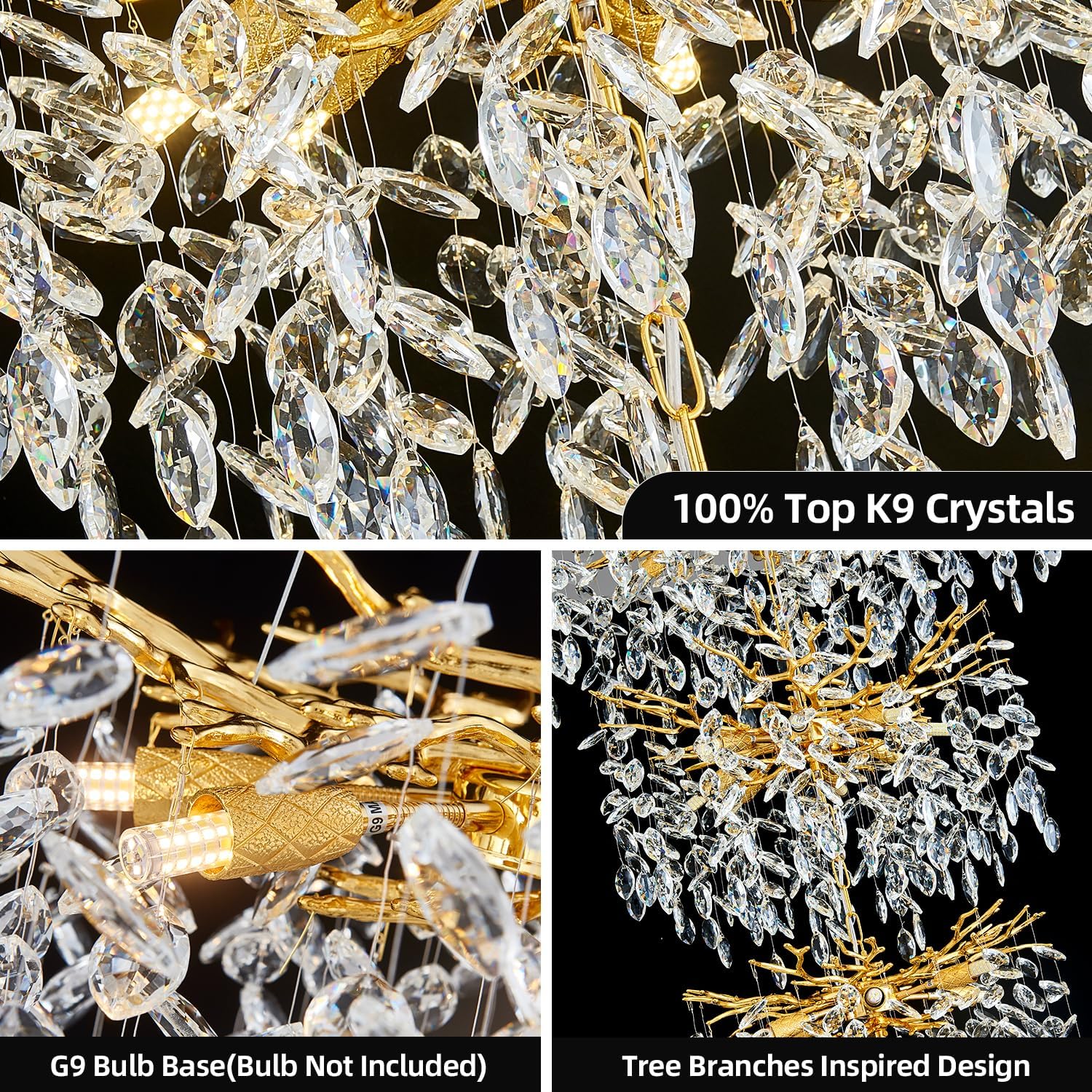 Kanweis Modern Tree Branch Crystal Chandelier 91″ Gold Luxury Large Pendant Lighting 25-Light Contemporary K9 Crystal Chandeliers for Dining Room Kitchen Living Room Foyer Entryway (Gold, H91-Round)