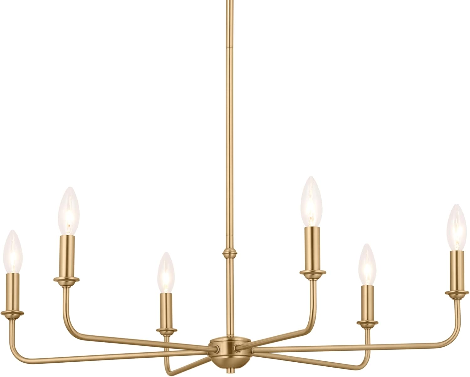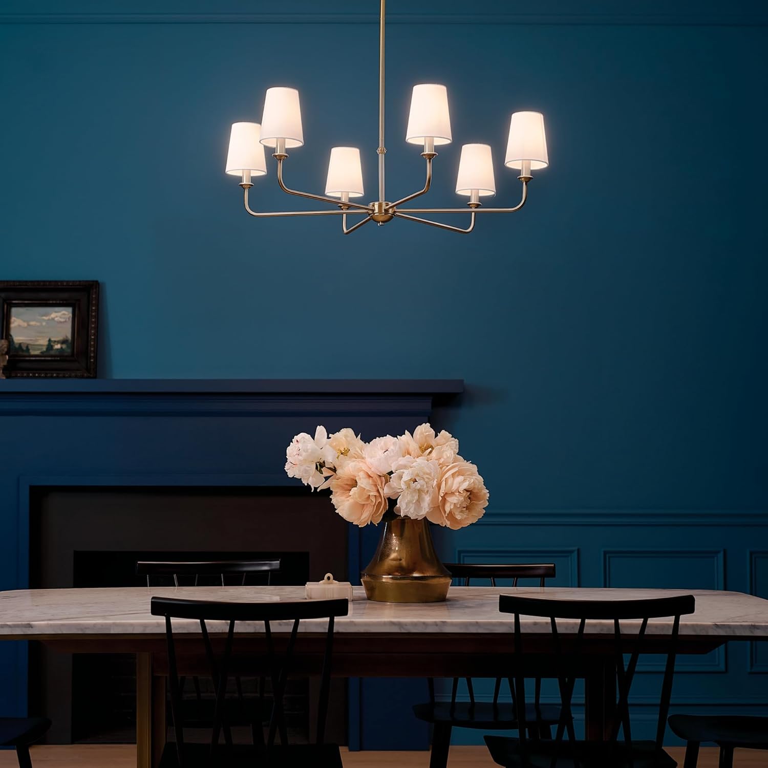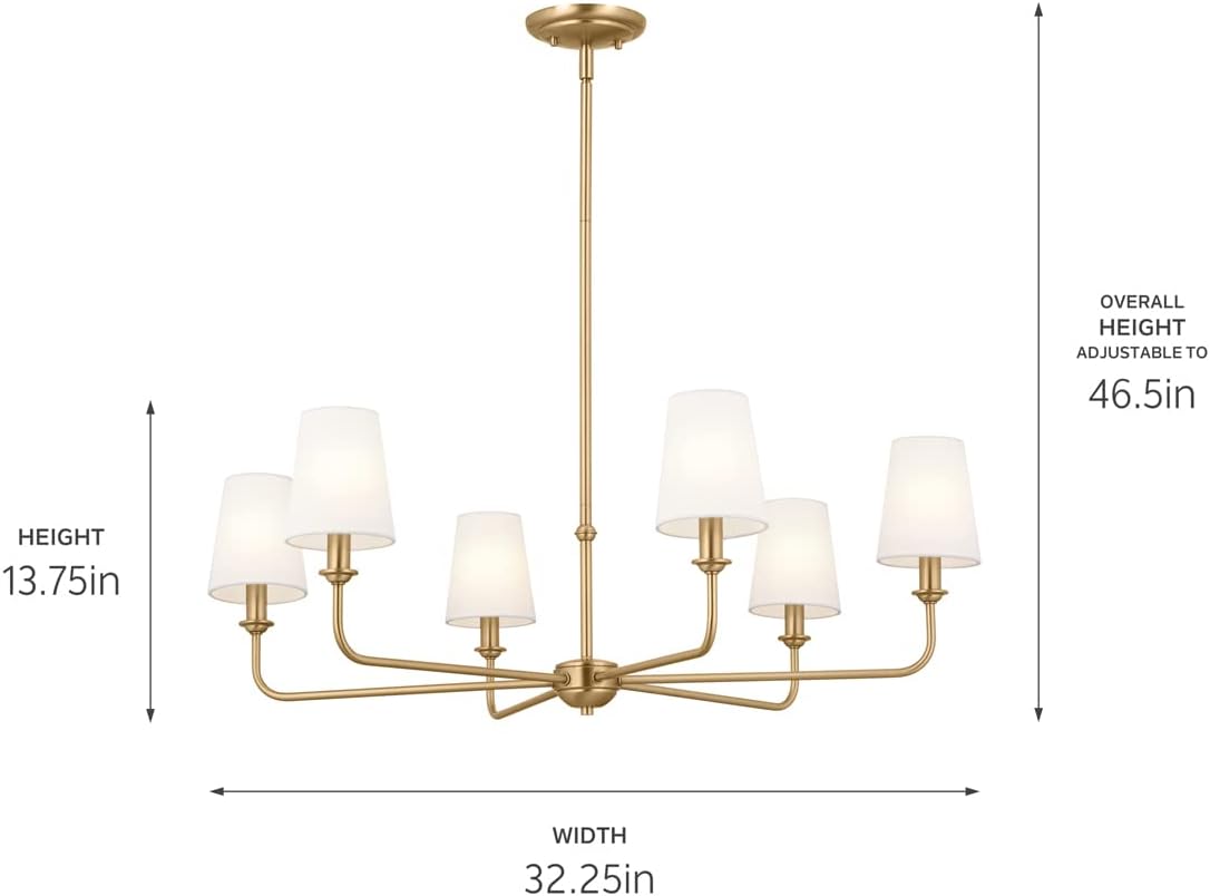 Kichler Pallas 6-Light Chandelier in Brushed Natural Brass, Classic Ceiling Light Fixture with Optional Linen Tapered Shades for Foyer, Living Room, or Dining Room, (32.25″ W x 13.75″ H), 52516BNB