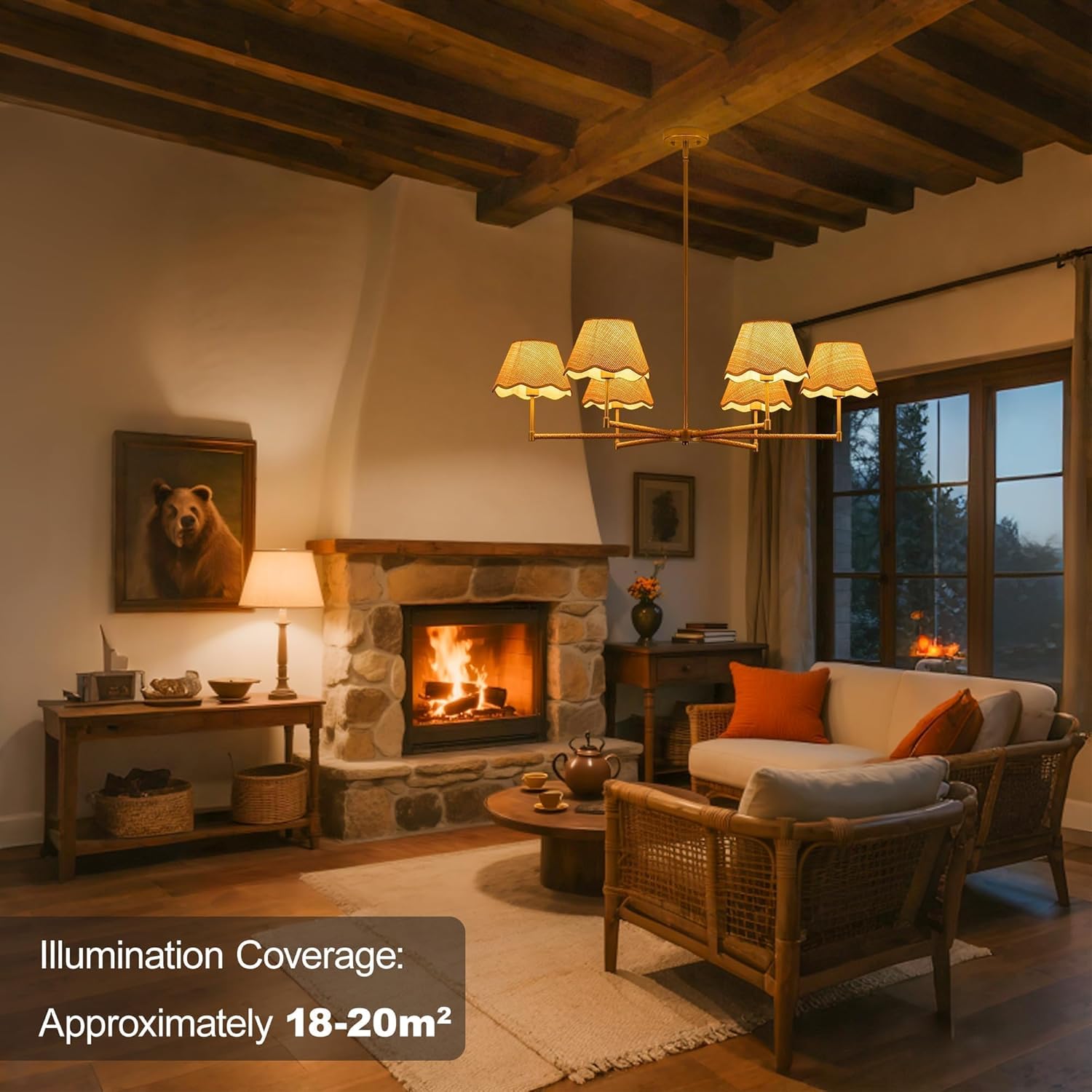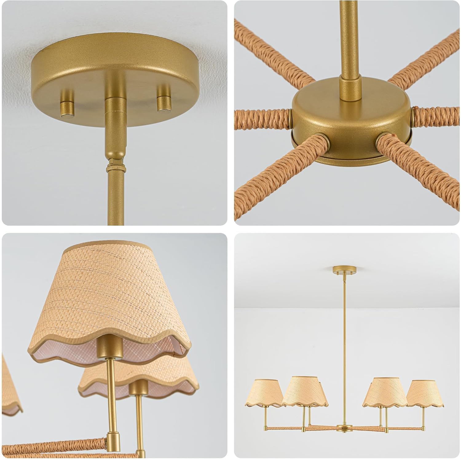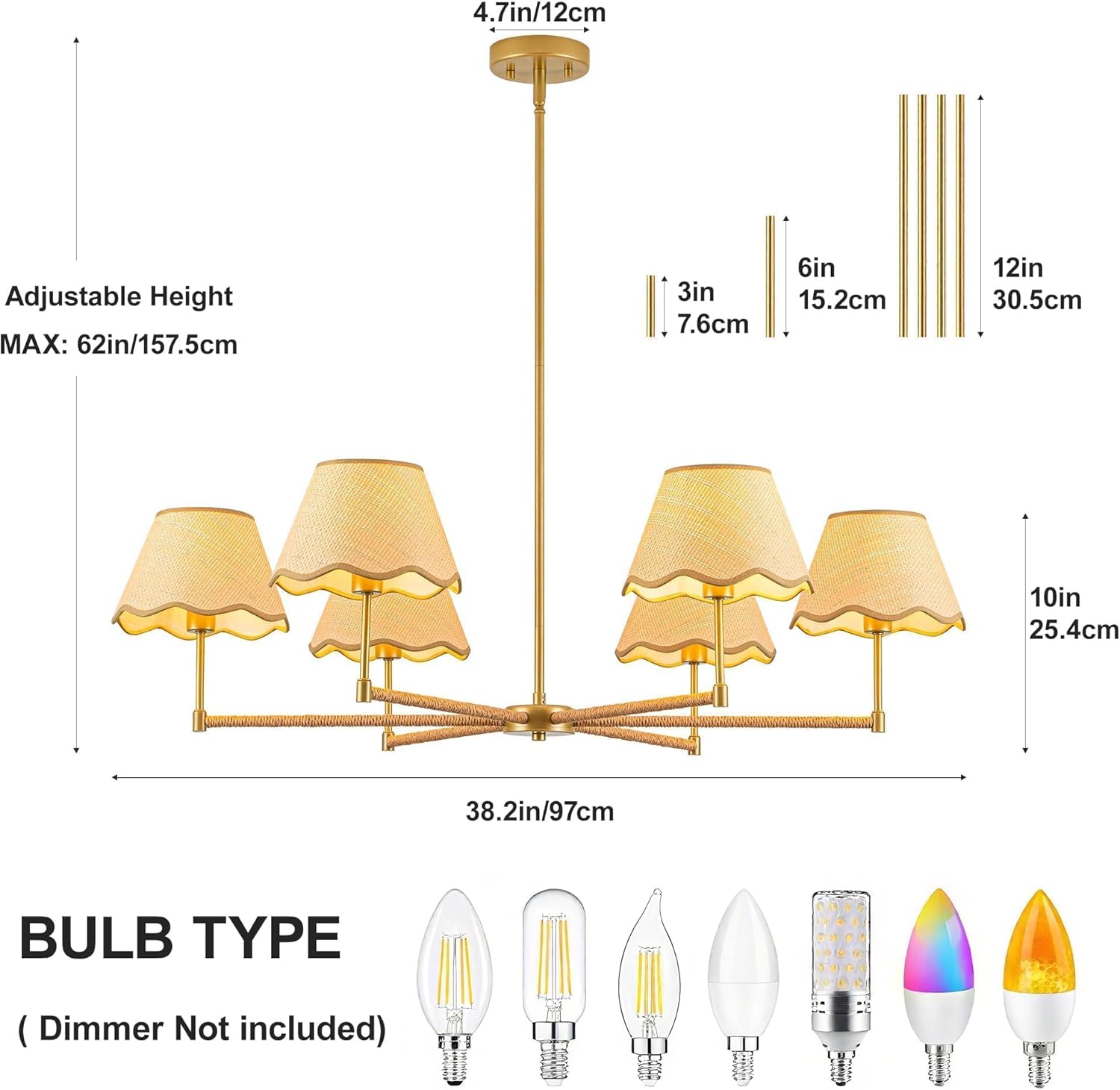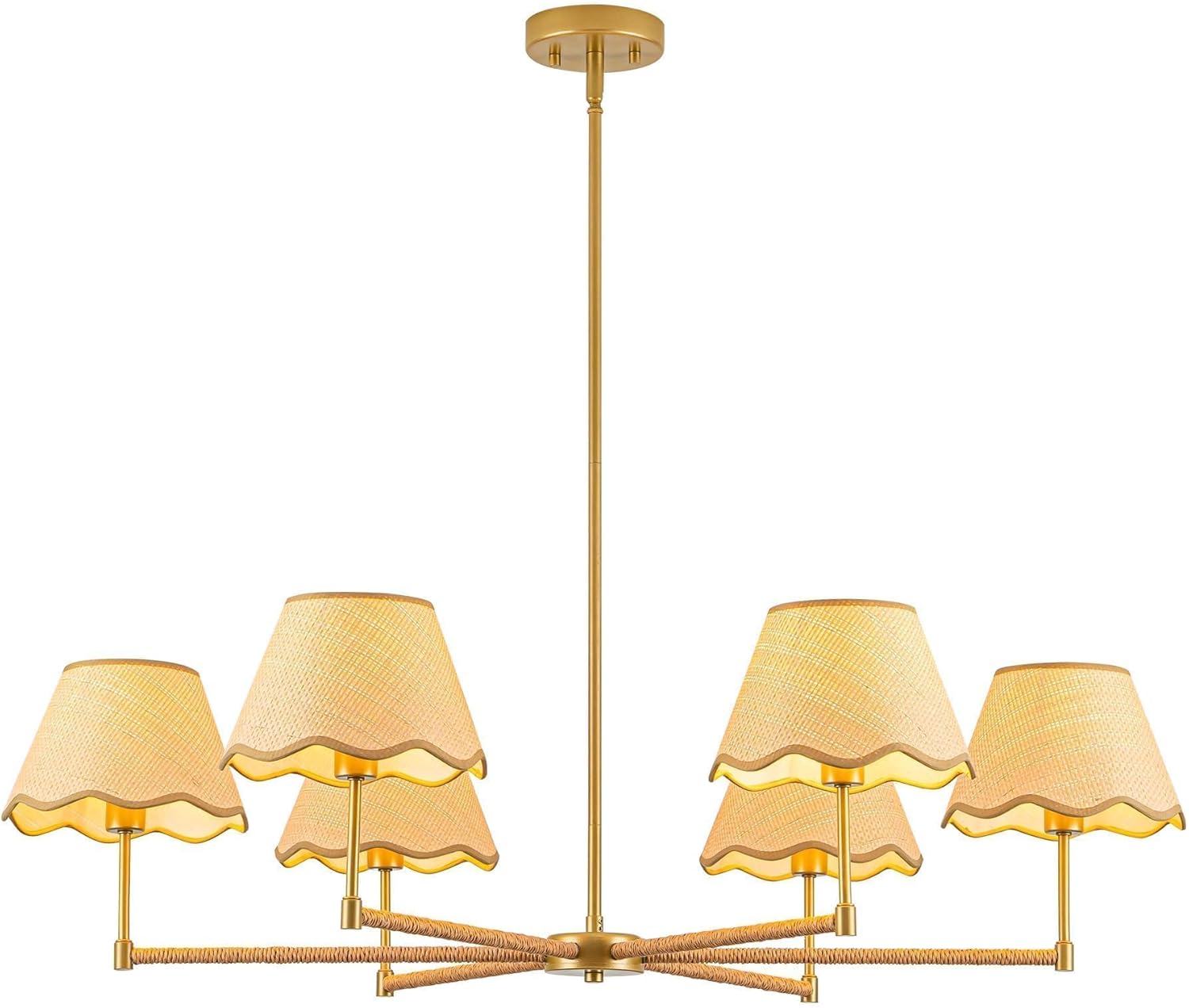 MAYNA 38u201D Farmhouse Chandelier Light Fixture, 6-Light Rattan Boho Chandeliers for Dining Room,Adjustable Pendant Lighting Fixtures, Rustic Hanging Lighting for Kitchen Island Living Room Bedroom