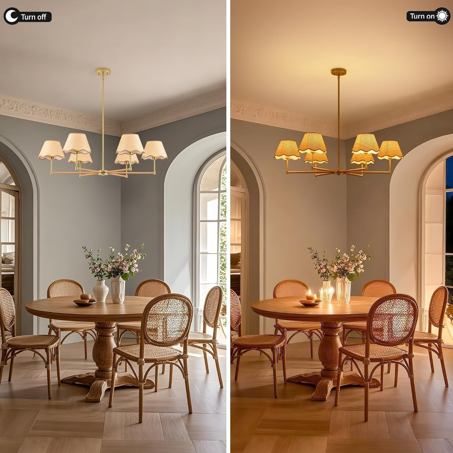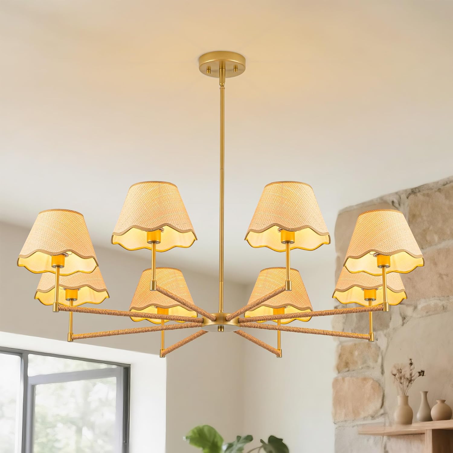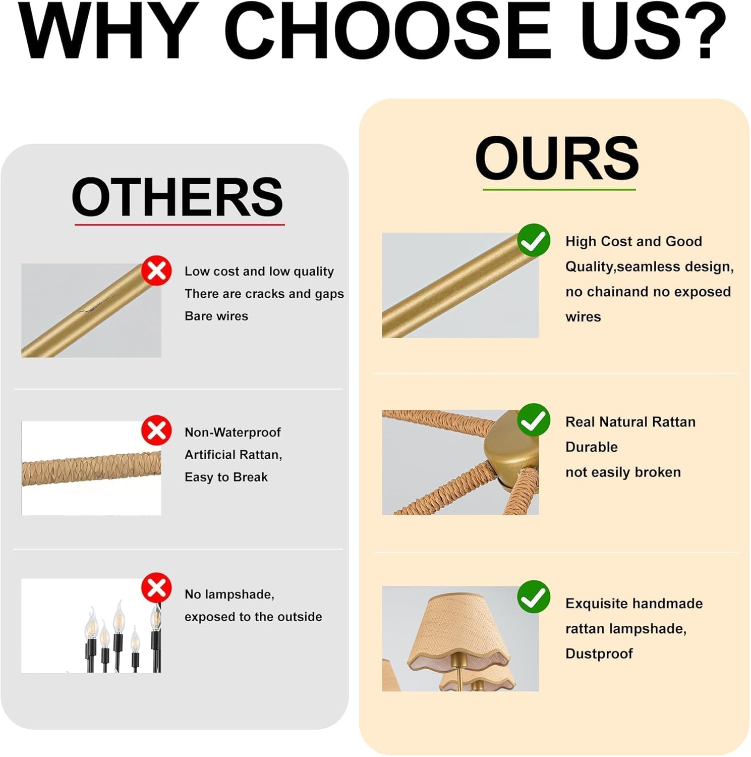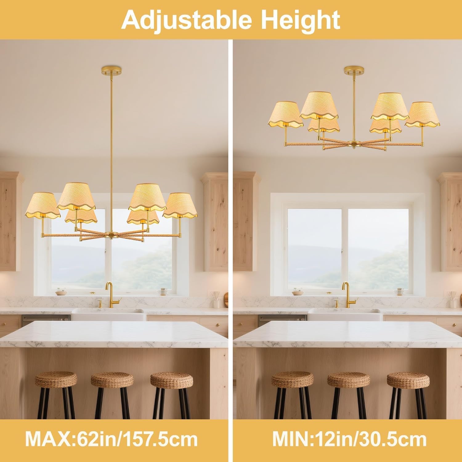 MAYNA 38u201D Farmhouse Chandelier Light Fixture, 6-Light Rattan Boho Chandeliers for Dining Room,Adjustable Pendant Lighting Fixtures, Rustic Hanging Lighting for Kitchen Island Living Room Bedroom