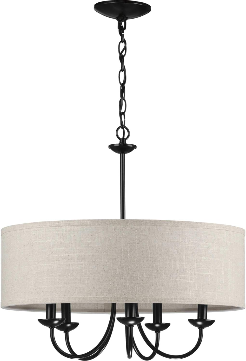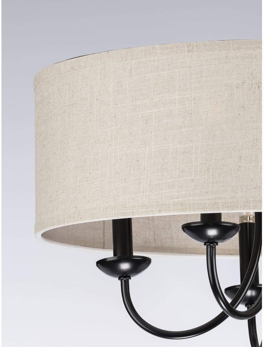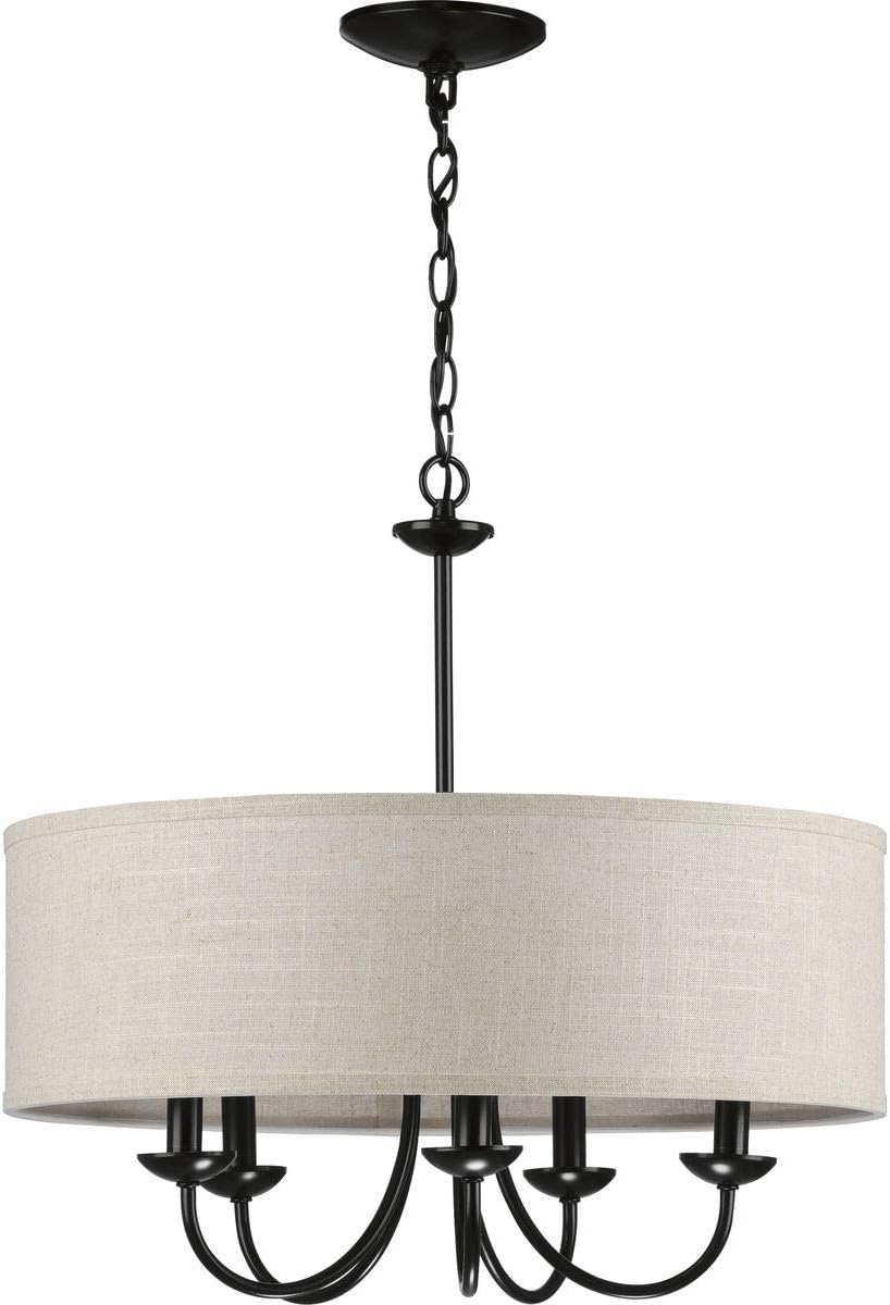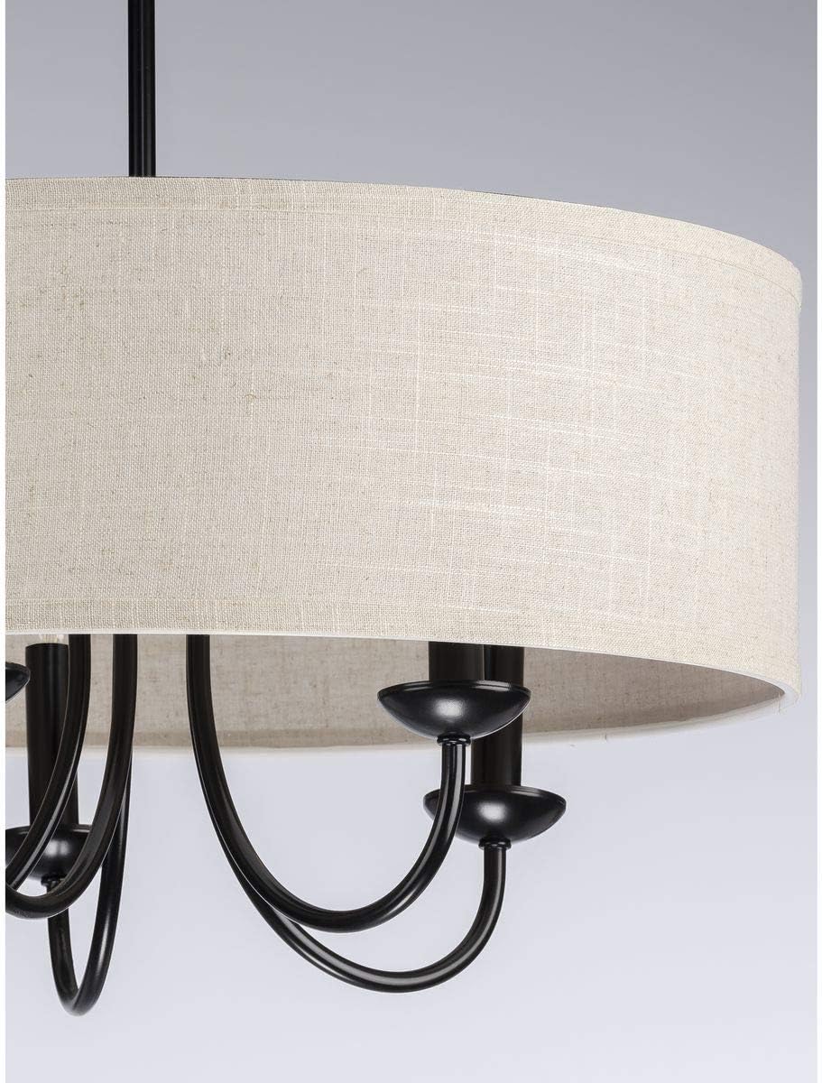 Progress Lighting Drum Shade Collection Five-Light Chandelier, Farmhouse Style Hanging Ceiling Light Fixture for Dining Rooms, Foyers, Harvest Linen Shade, Matte Black