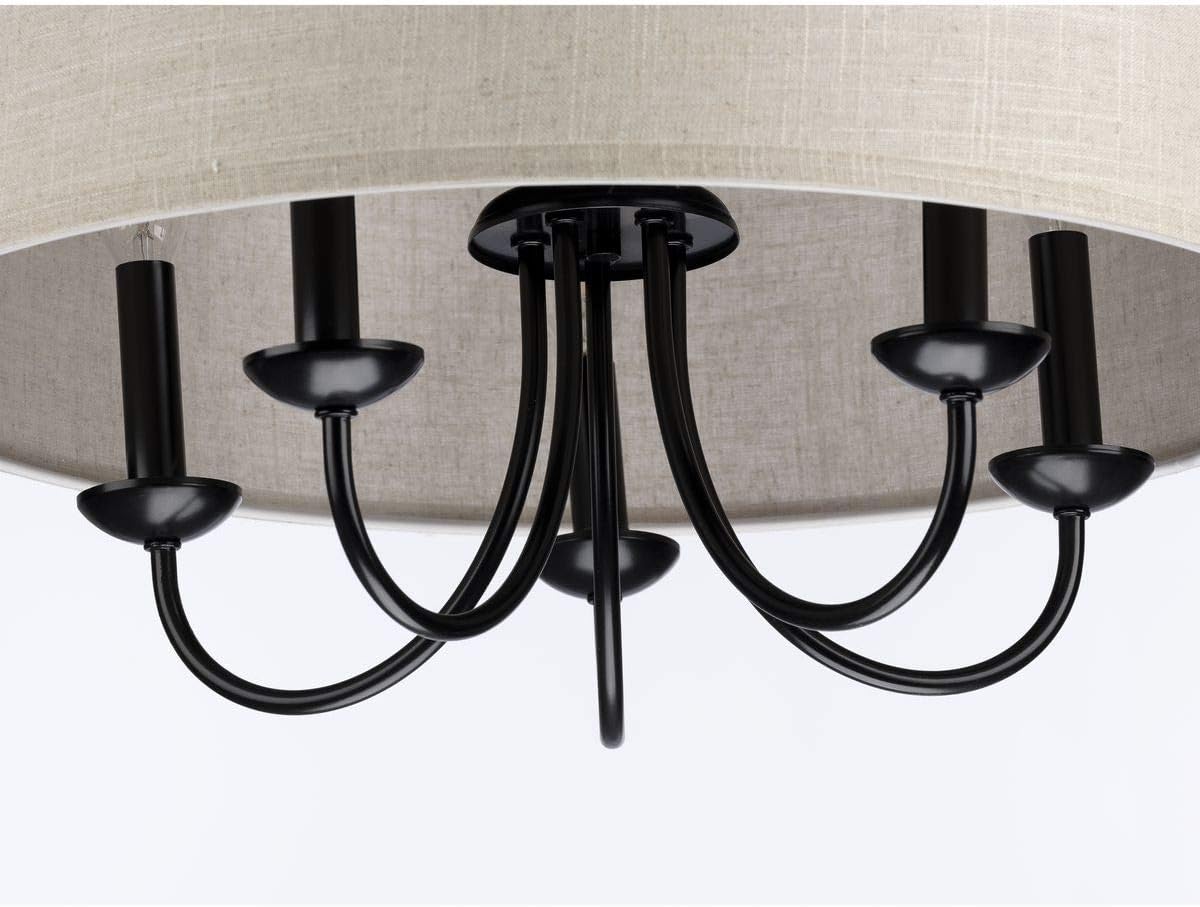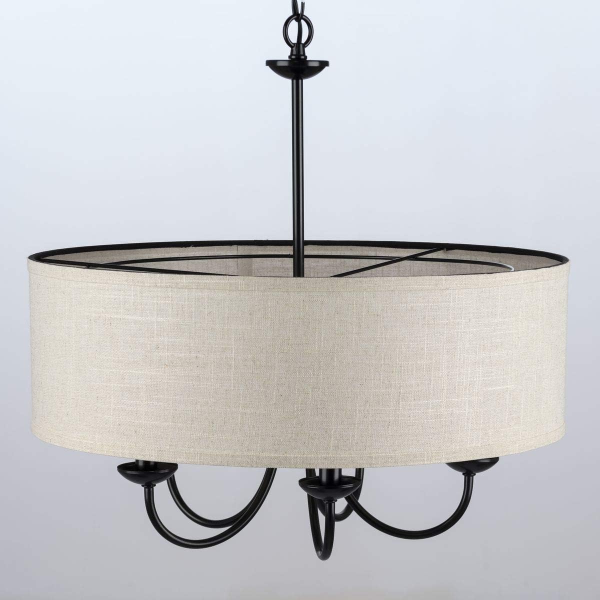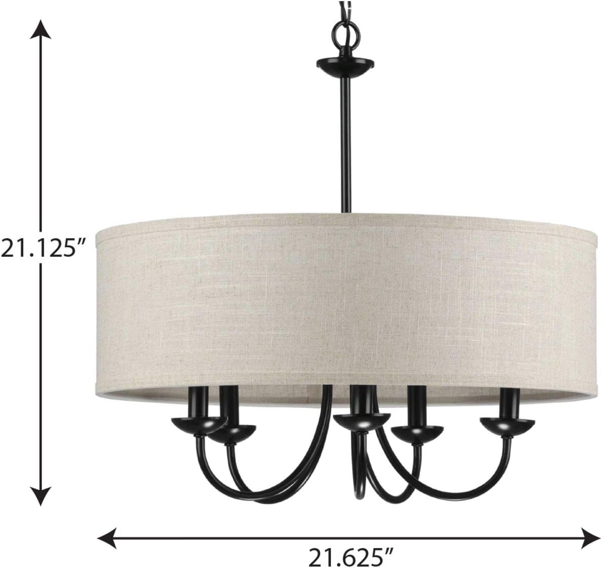 Progress Lighting Drum Shade Collection Five-Light Chandelier, Farmhouse Style Hanging Ceiling Light Fixture for Dining Rooms, Foyers, Harvest Linen Shade, Matte Black