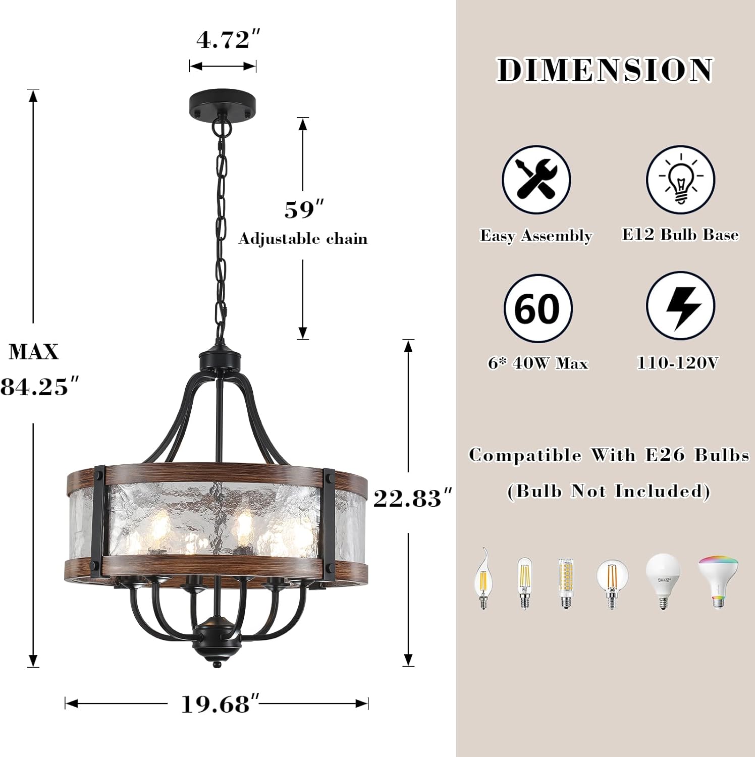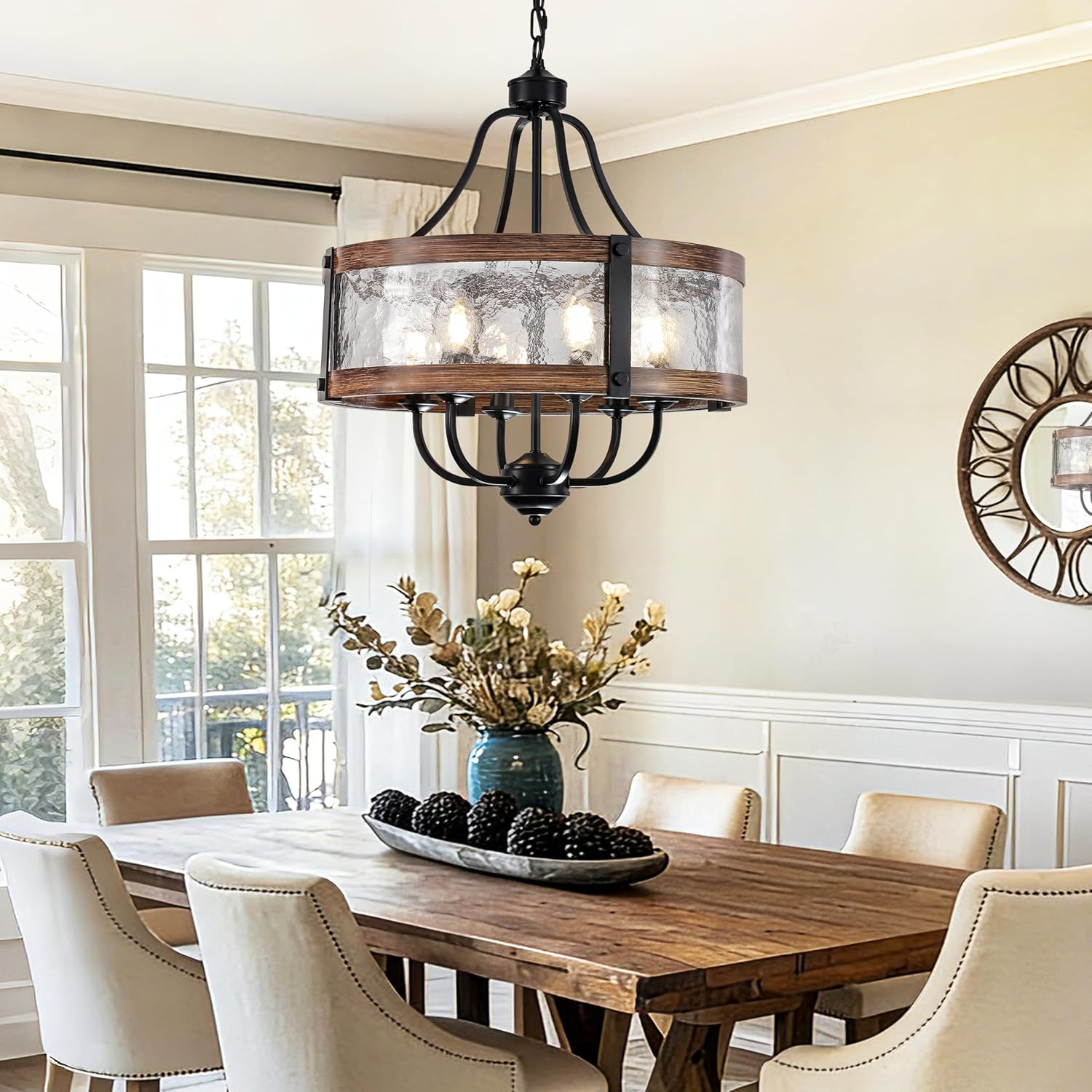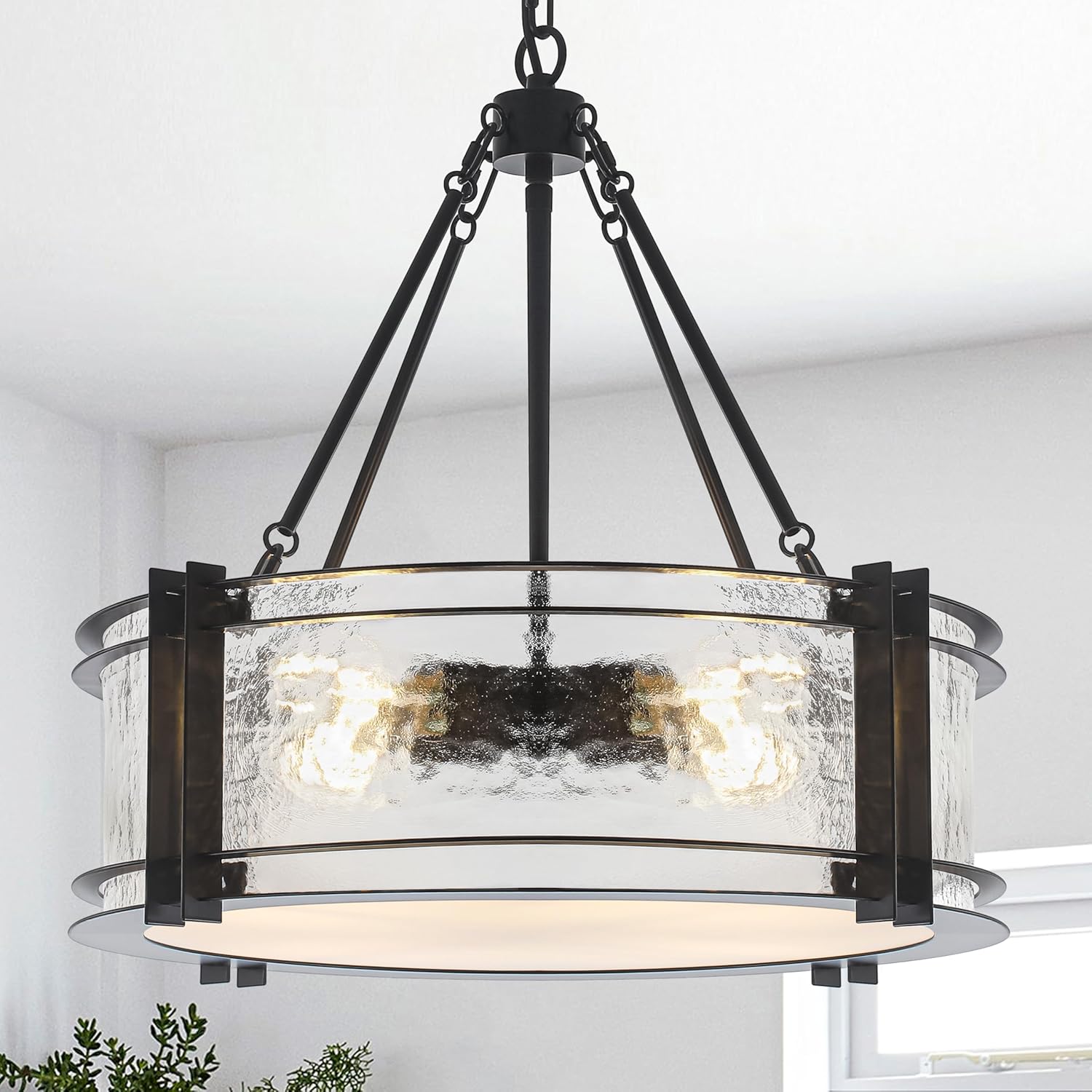 QAPKGH 19.7″ Glass Chandelier for Dining Room, Farmhouse Round Hanging Light Fixtures for Bedroom Foyer Living Room Hallway Foyer