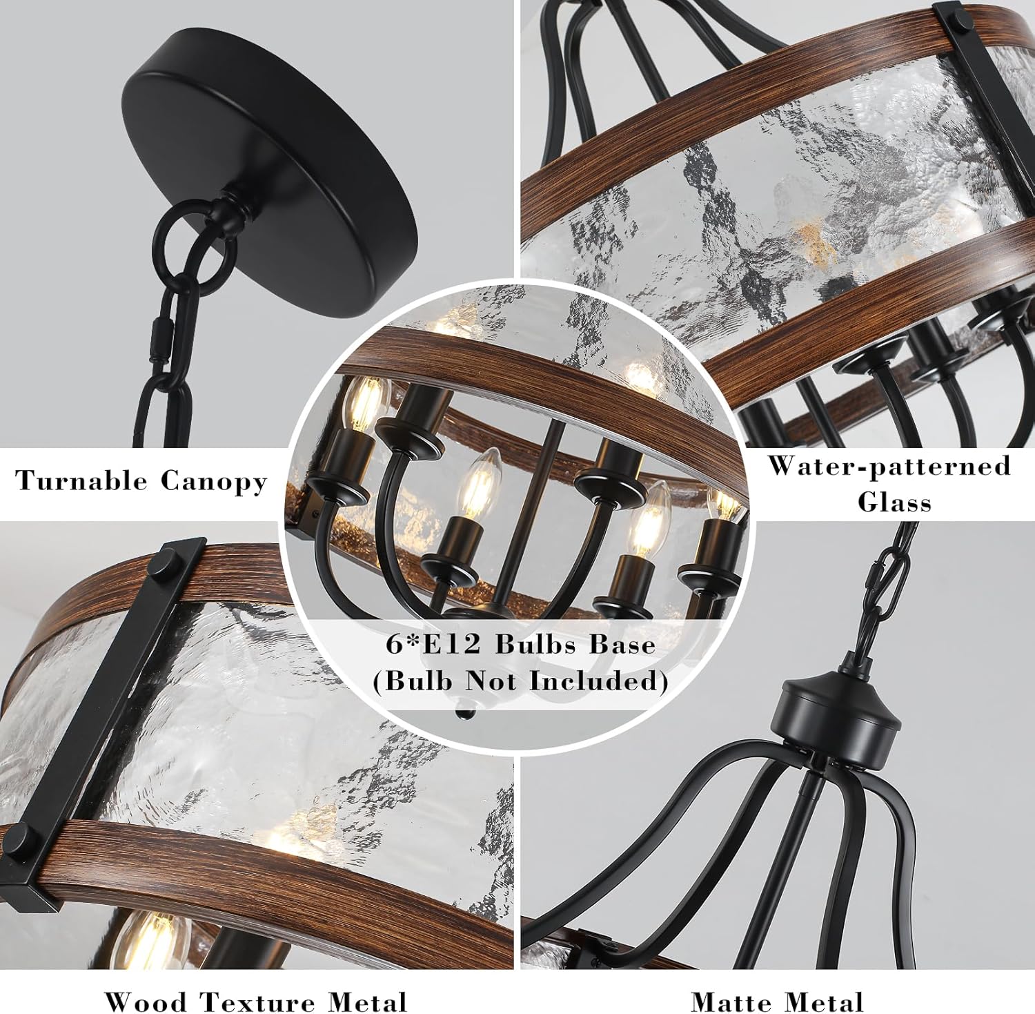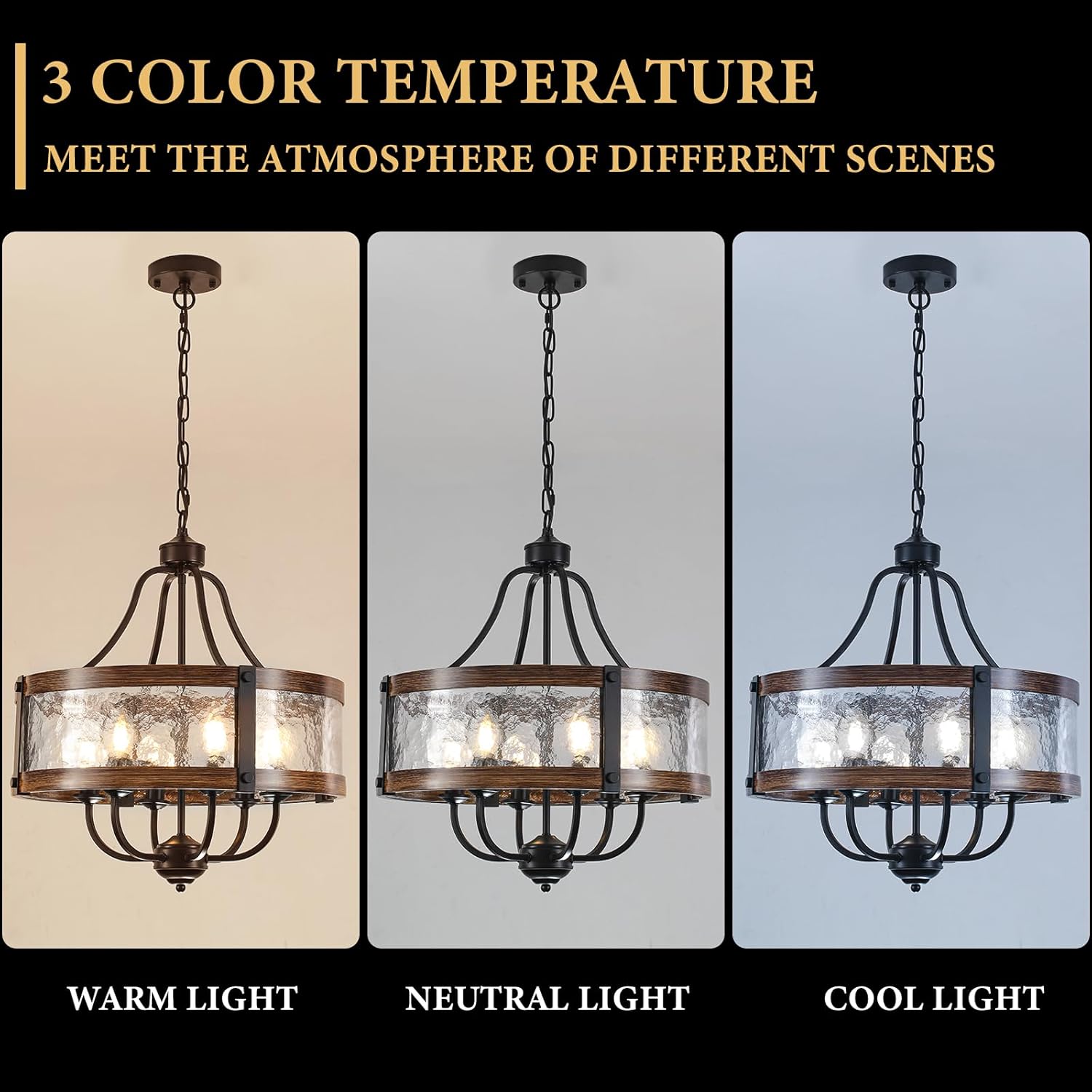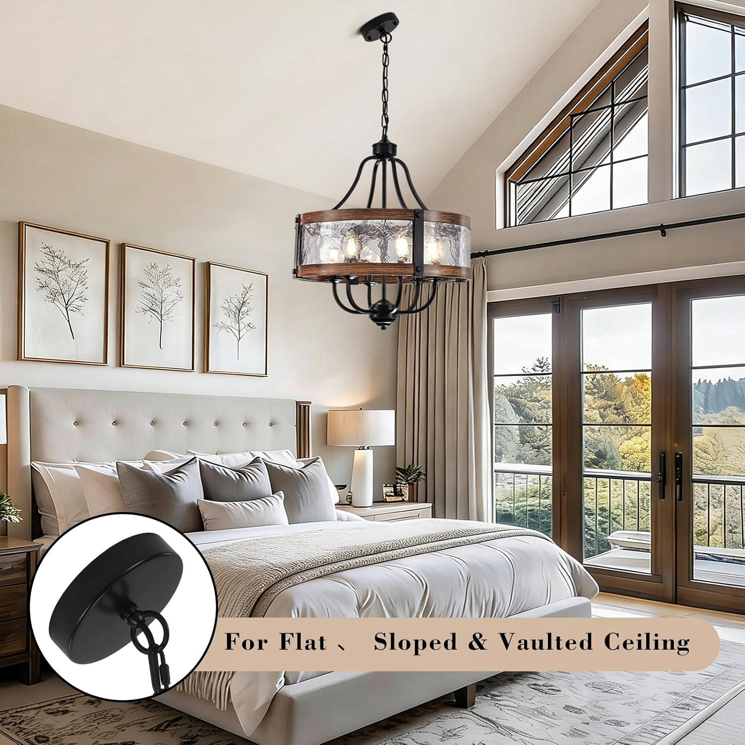 QAPKGH 19.7″ Glass Chandelier for Dining Room, Farmhouse Round Hanging Light Fixtures for Bedroom Foyer Living Room Hallway Foyer
