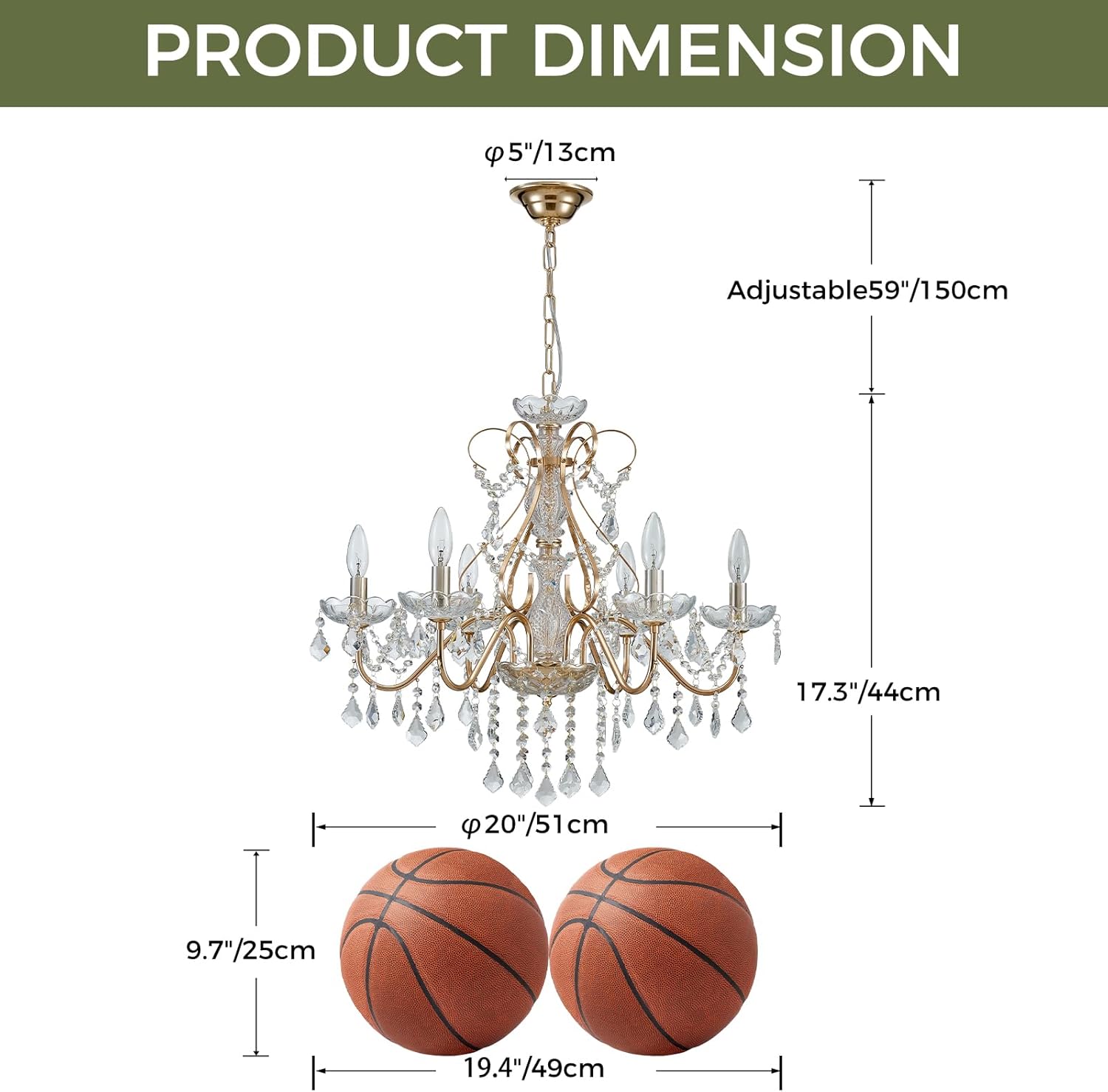 Saint Mossi 6 Light Crystal Chandelier Light Fixture Modern Chandelier Crystal Lighting, French Gold Crystal Raindrop Chandelier for Dining Room,Bedroom,Living Room, H23 x D24