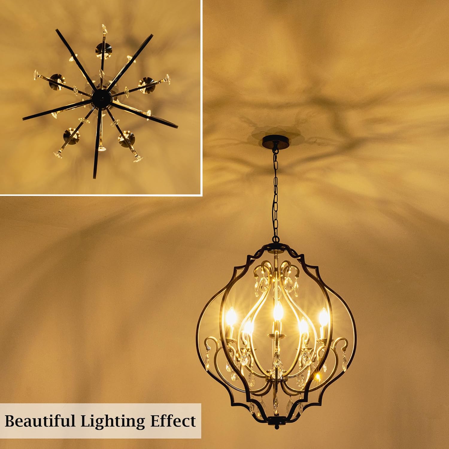 TOCHIC 5 Lights Farmhouse Chandelier, Rustic Orb Chandeliers for Dining Room, Black Crystal Chandelier Light Fixture for Living Room, Bedreoom, Hallway, Nickel, D 27″