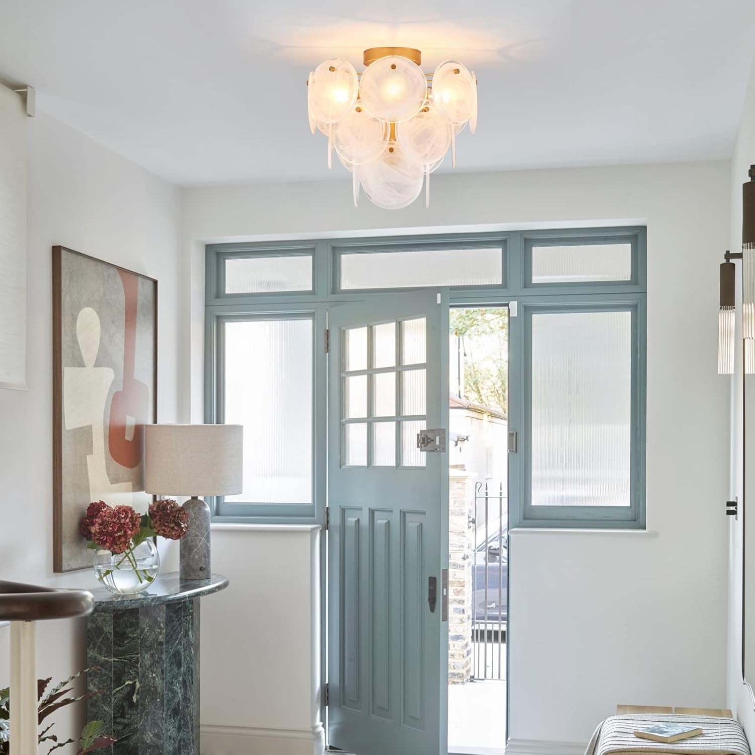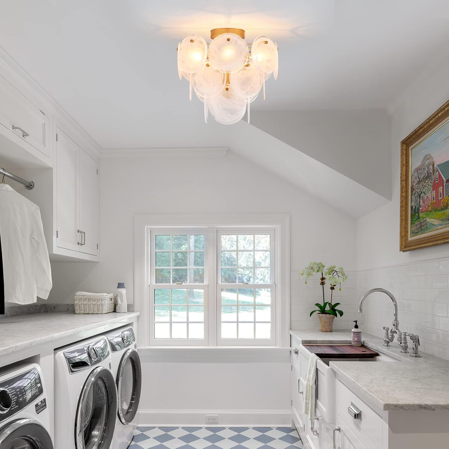 - The geometric flush mount ceiling light suits the room from rustic farmhouse to the contemporary minimalist style;