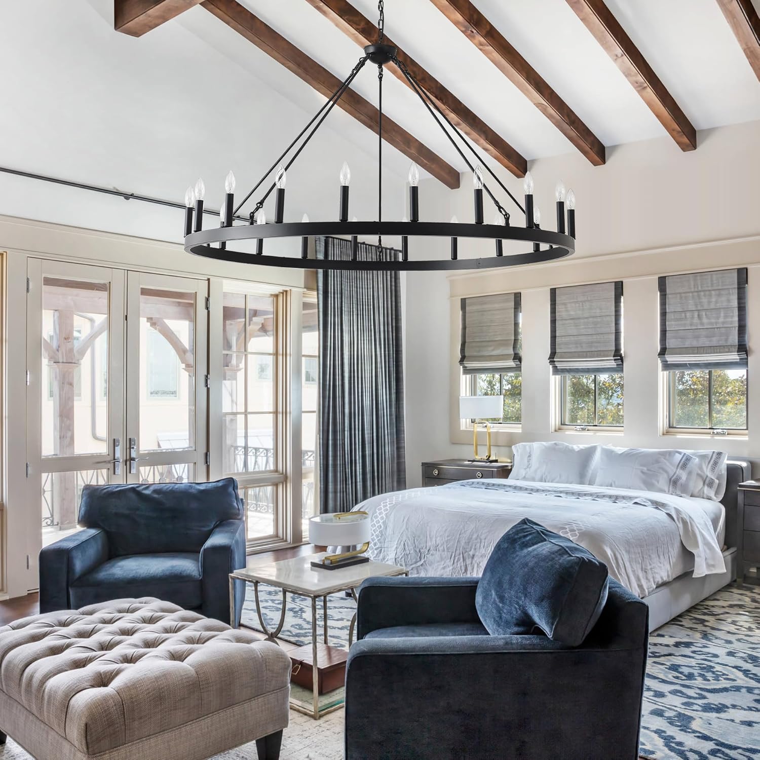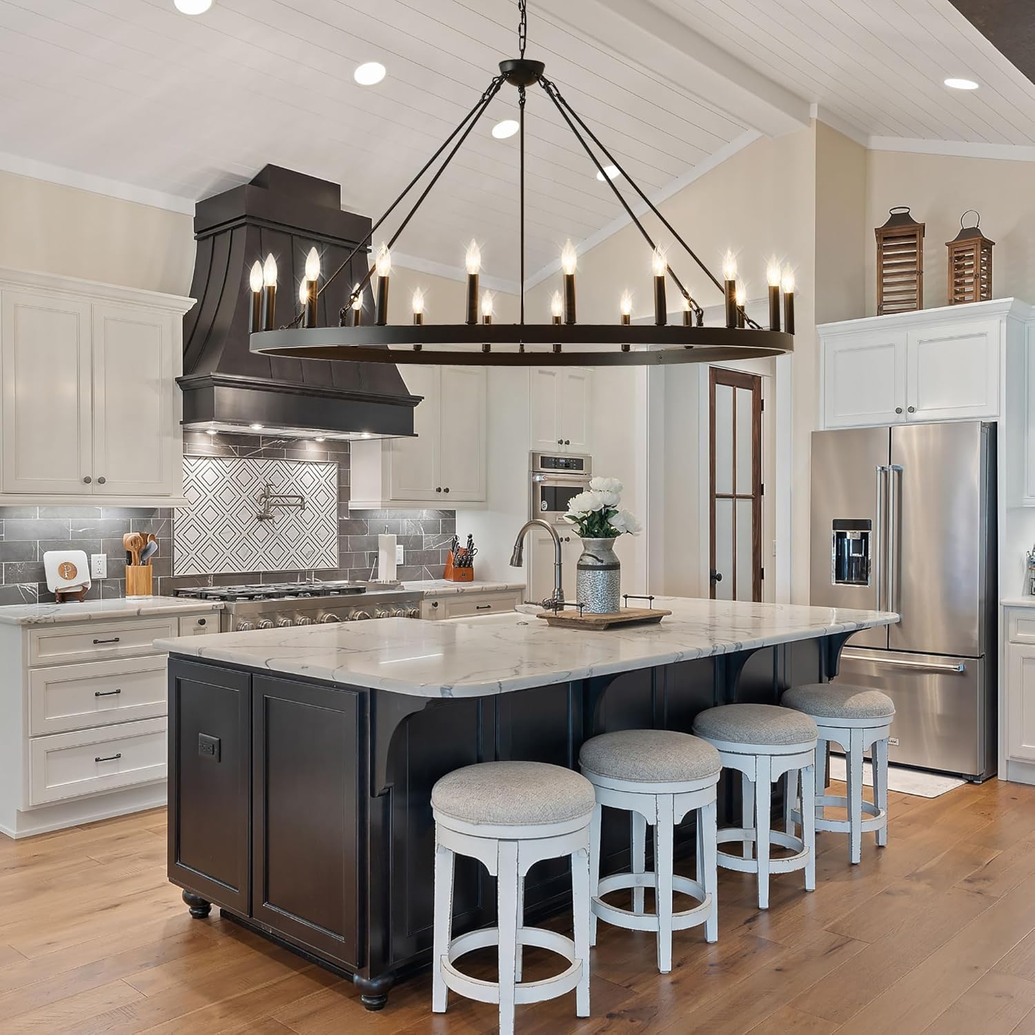 Wagon Wheel's unique brass Black finish for dining rooms, kitchen islands, living rooms, game rooms, staircases, or entryways looks amazing all around. Combined with the three-part adjustable chain, it saves you the hassle of cutting chains.