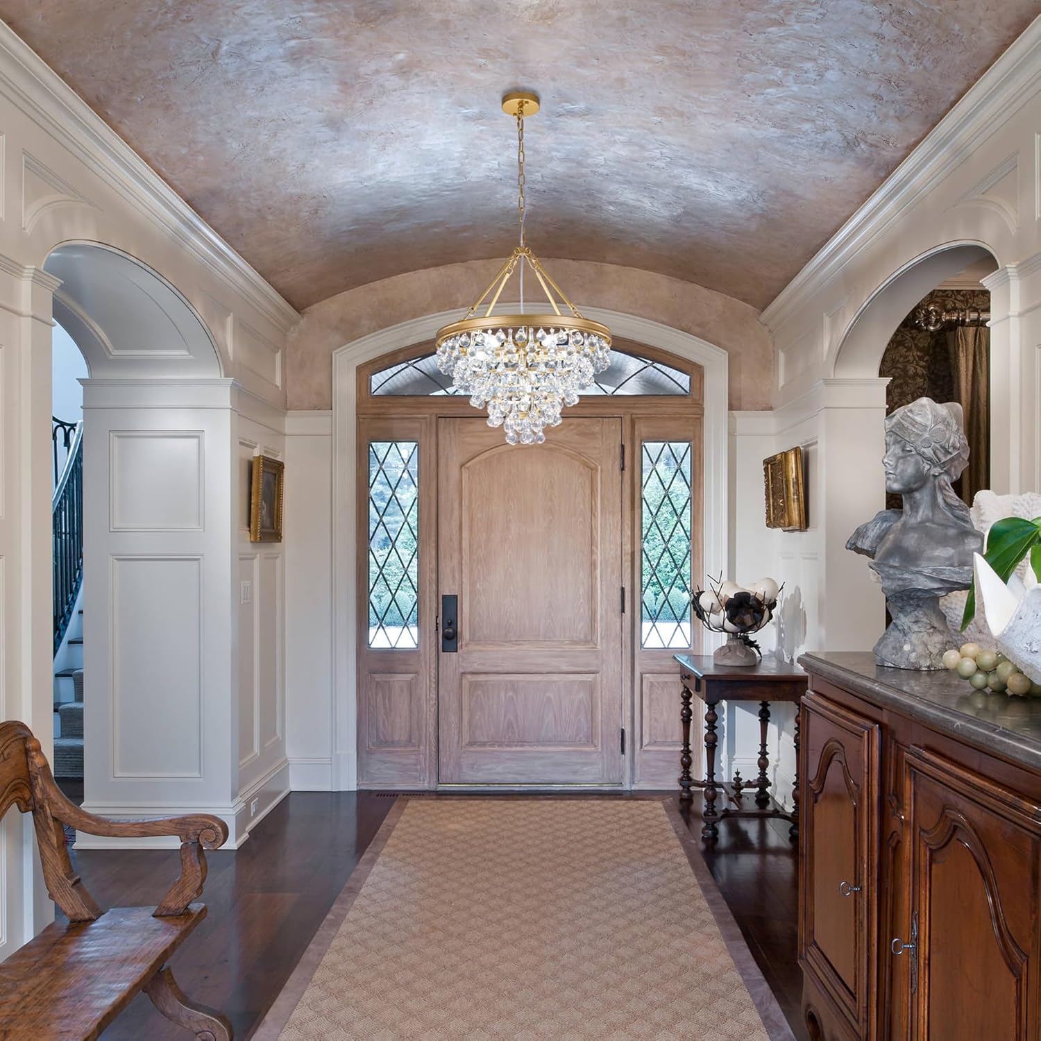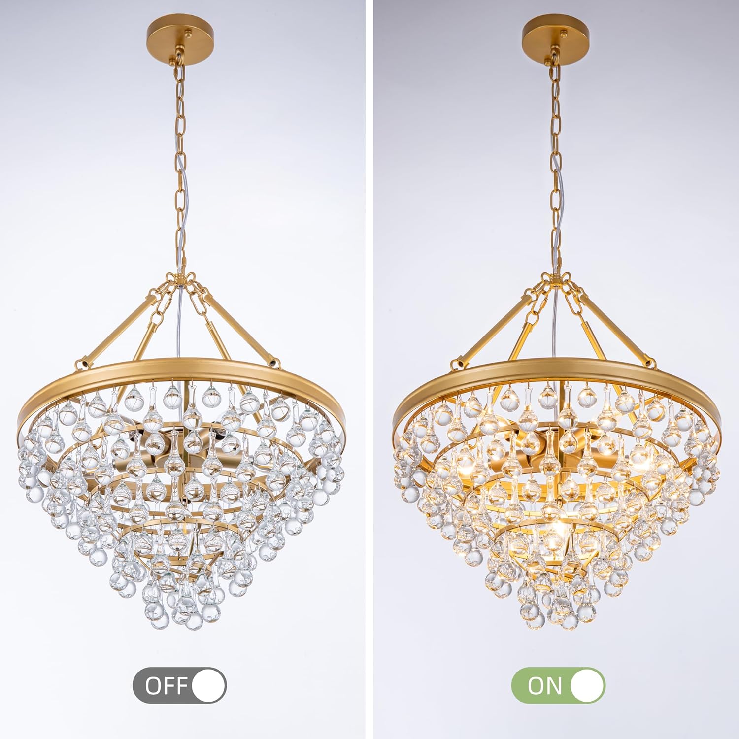 Wellmet Modern Crystal Chandeliers, 6 Lights Farmhouse Chandeliers for Dining Room, Gold Ceiling Light Fixture for Foyer, Bedroom, Living Room, Entryway, Kitchen Island, W-20 Inches