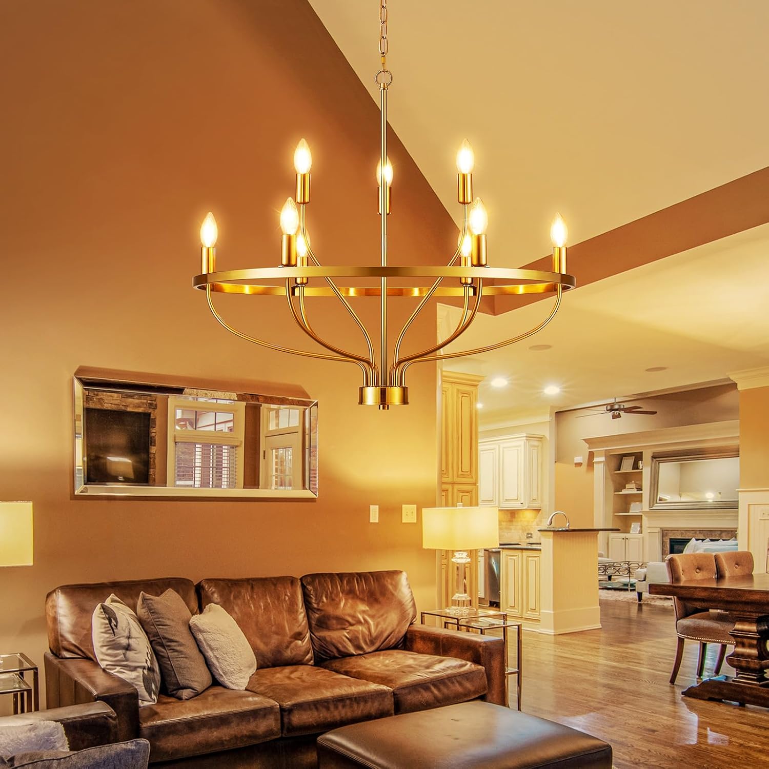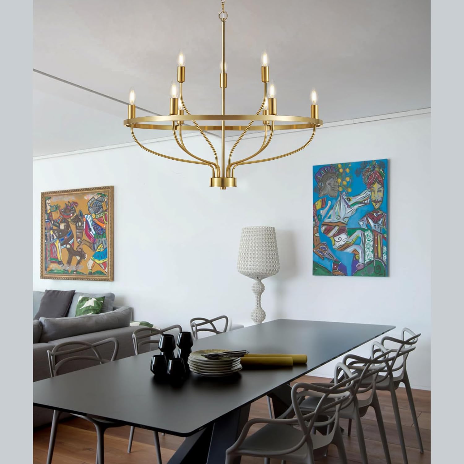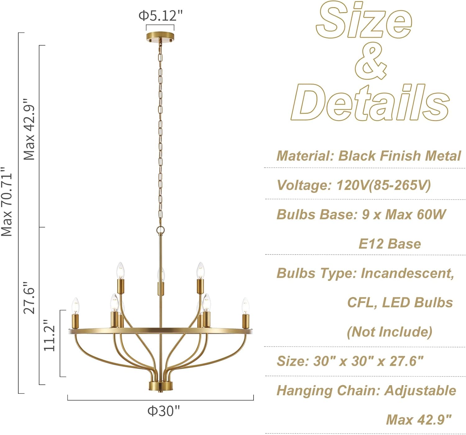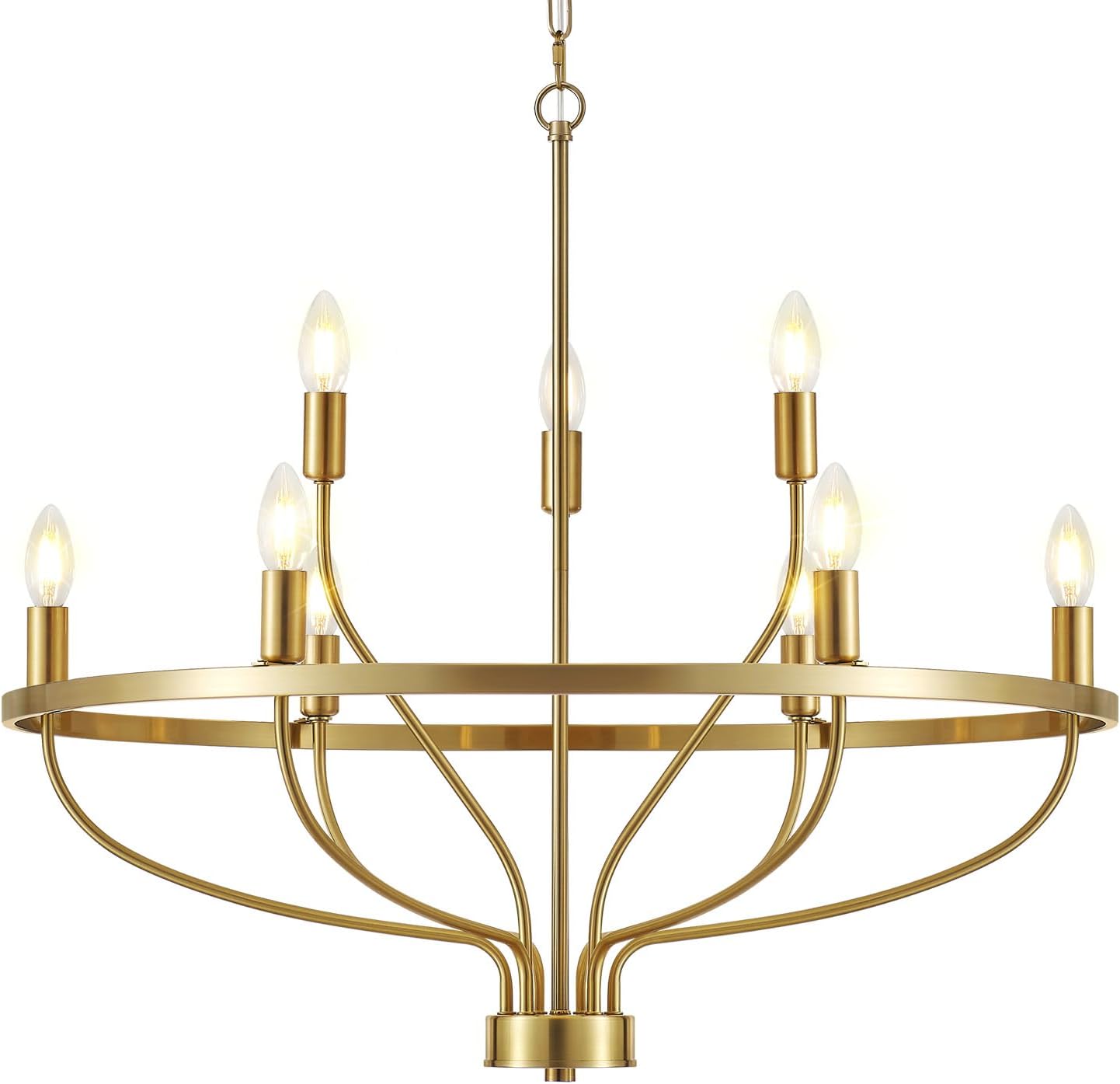 Widluth 30″ Modern Gold Chandelier Light Fixture Vintage 9-Lights Mid Century Modern Candle Style Chandeliers Rustic Industrial Golden Chandelier for Dining Room, Kitchen Island, Living Room, E12