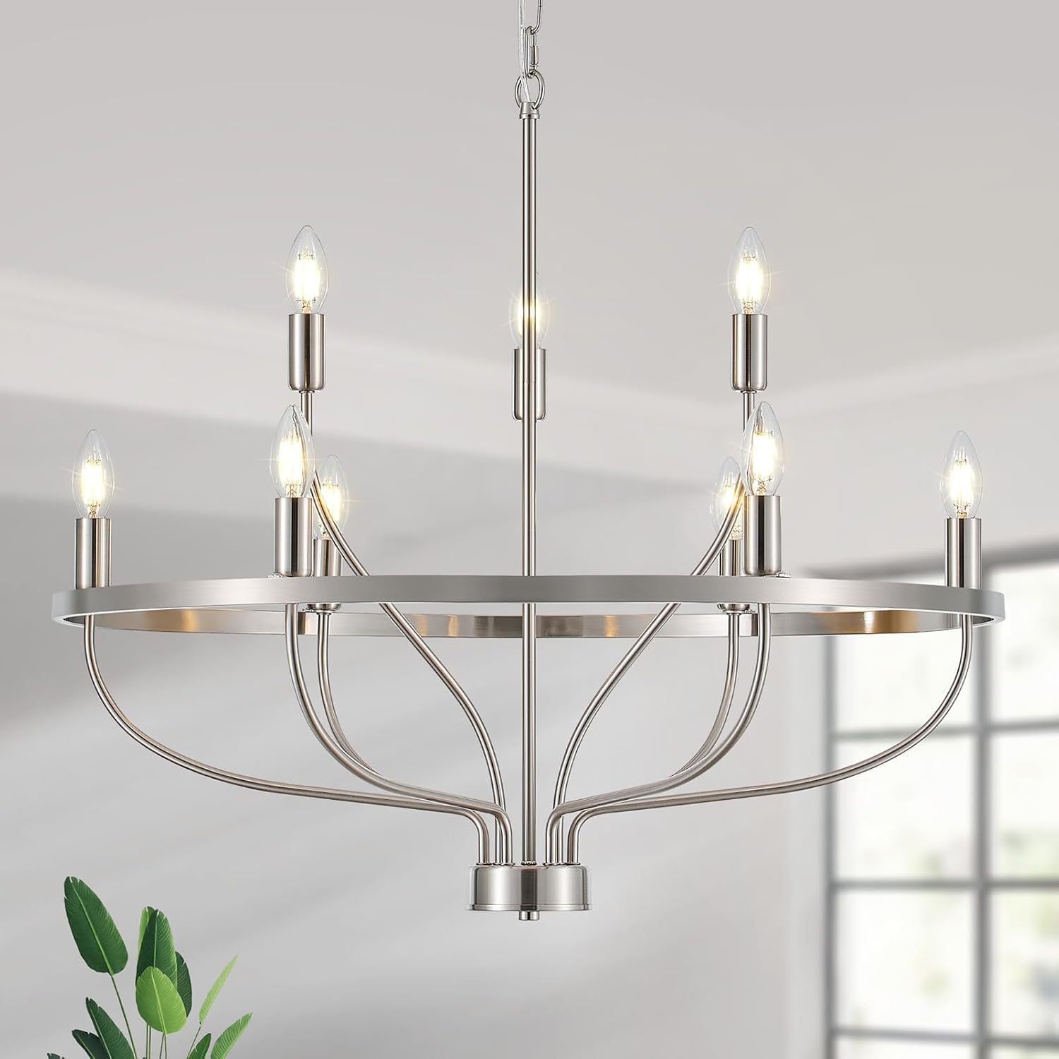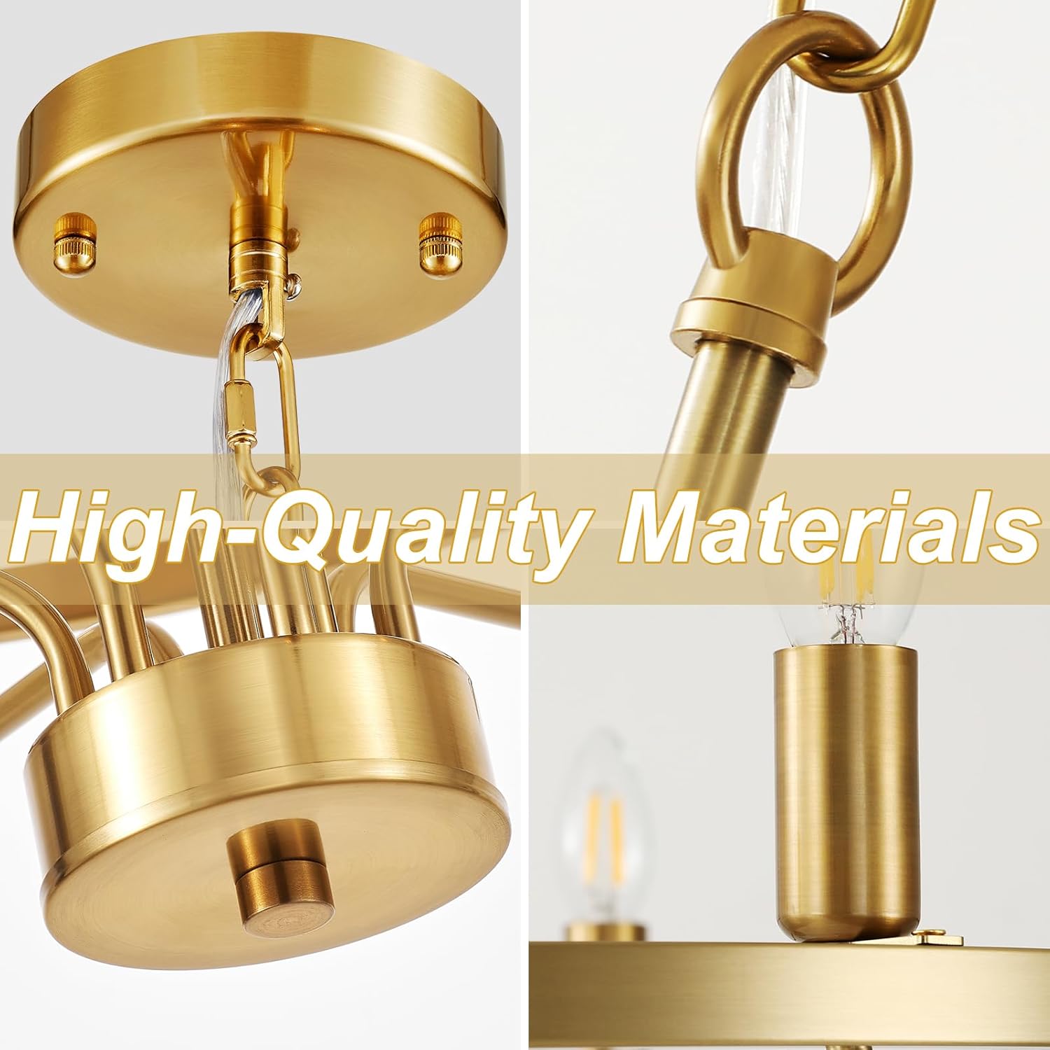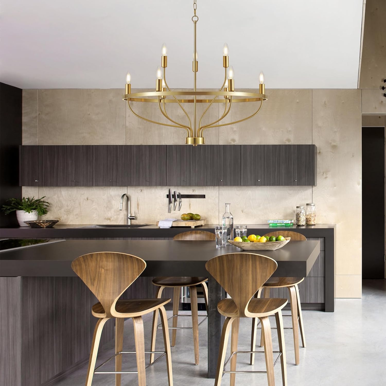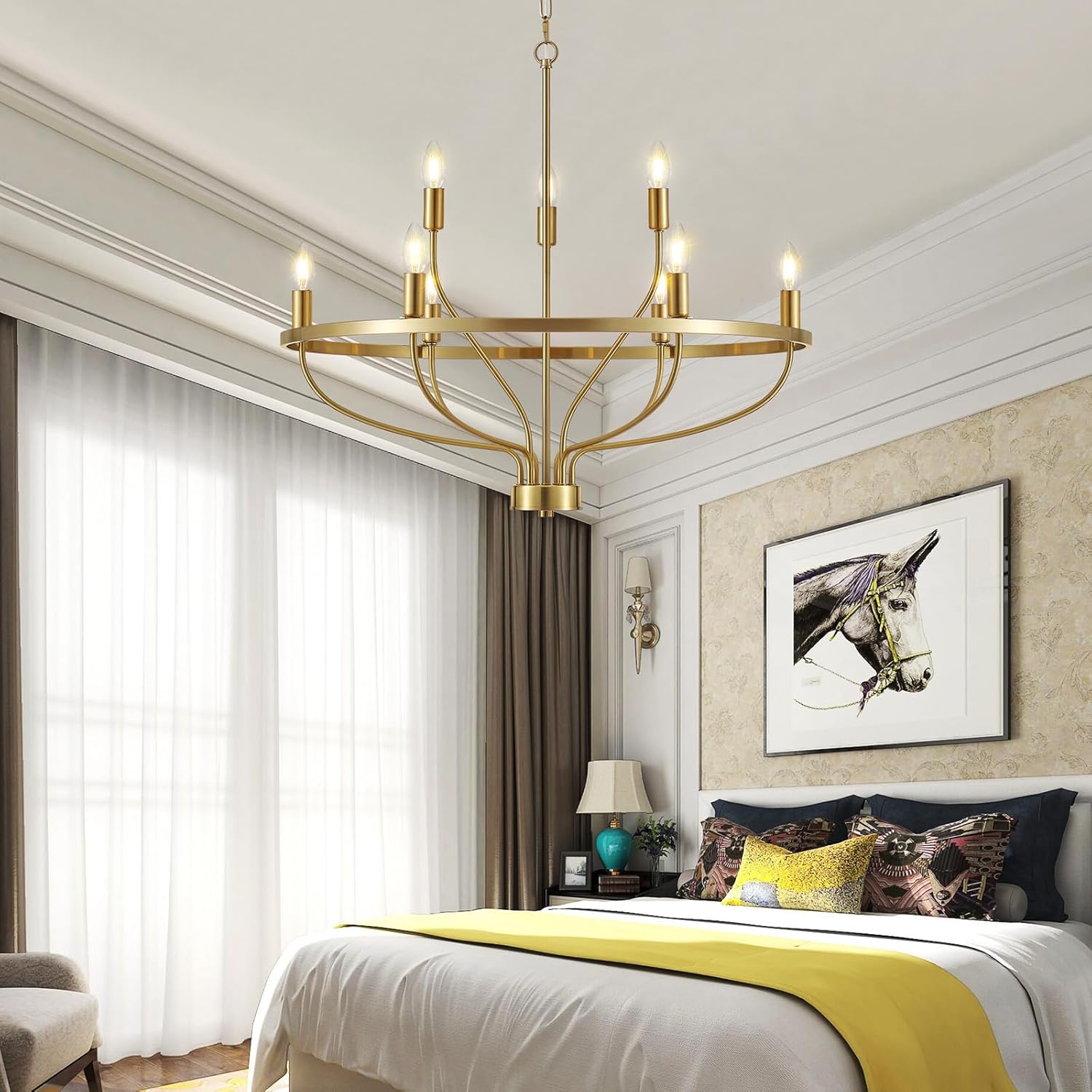 Widluth 30″ Modern Gold Chandelier Light Fixture Vintage 9-Lights Mid Century Modern Candle Style Chandeliers Rustic Industrial Golden Chandelier for Dining Room, Kitchen Island, Living Room, E12