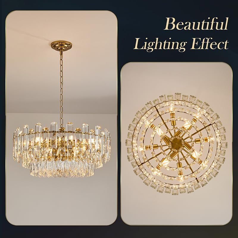The 12-light design provides 360° light coverage that is soft and warm without being harsh, making it the perfect accent for dining rooms, living rooms, and foyers. This Luxury Crystal Chandelier will brighten your home and is an excellent choice for housewarming or holiday gifts.