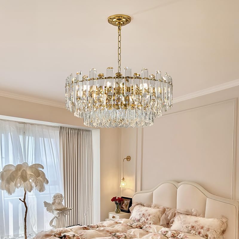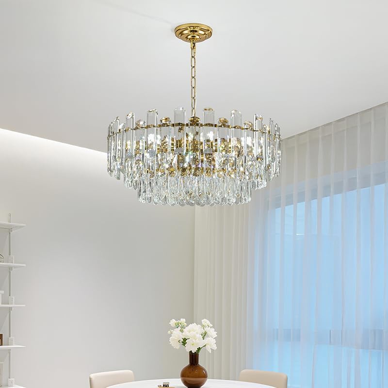 [Radiant and Pure] The core feature of this luxurious three-tier crystal lamp lies in its carefully selected fully transparent crystals. Each crystal is meticulously cut, boasting excellent transparency and refractive index. When the lights are turned on, the light undergoes countless refractions and reflections within the transparent crystals, creating a dazzling rainbow-like light effect. This instantly illuminates your space and creates a luxurious atmosphere that is dreamlike and glittering
