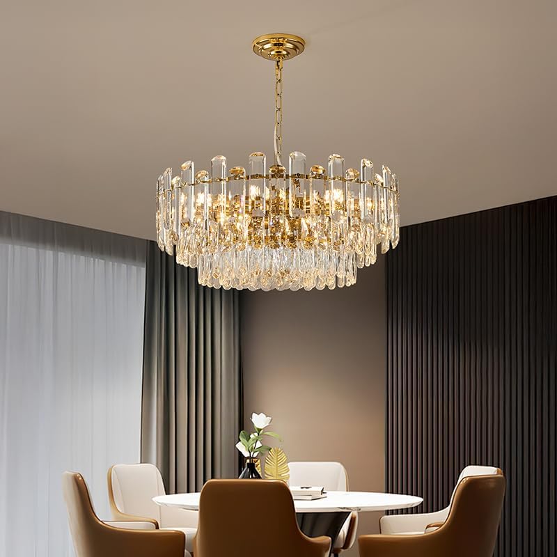 This Crystal Chandelier Light Fixtures for dining room support has flexible height adjustment between 11.8" and 52". The Modern Crystal Pendant Lighting suits all ceilings, including flat, beveled, vaulted, or sloped ceilings.
