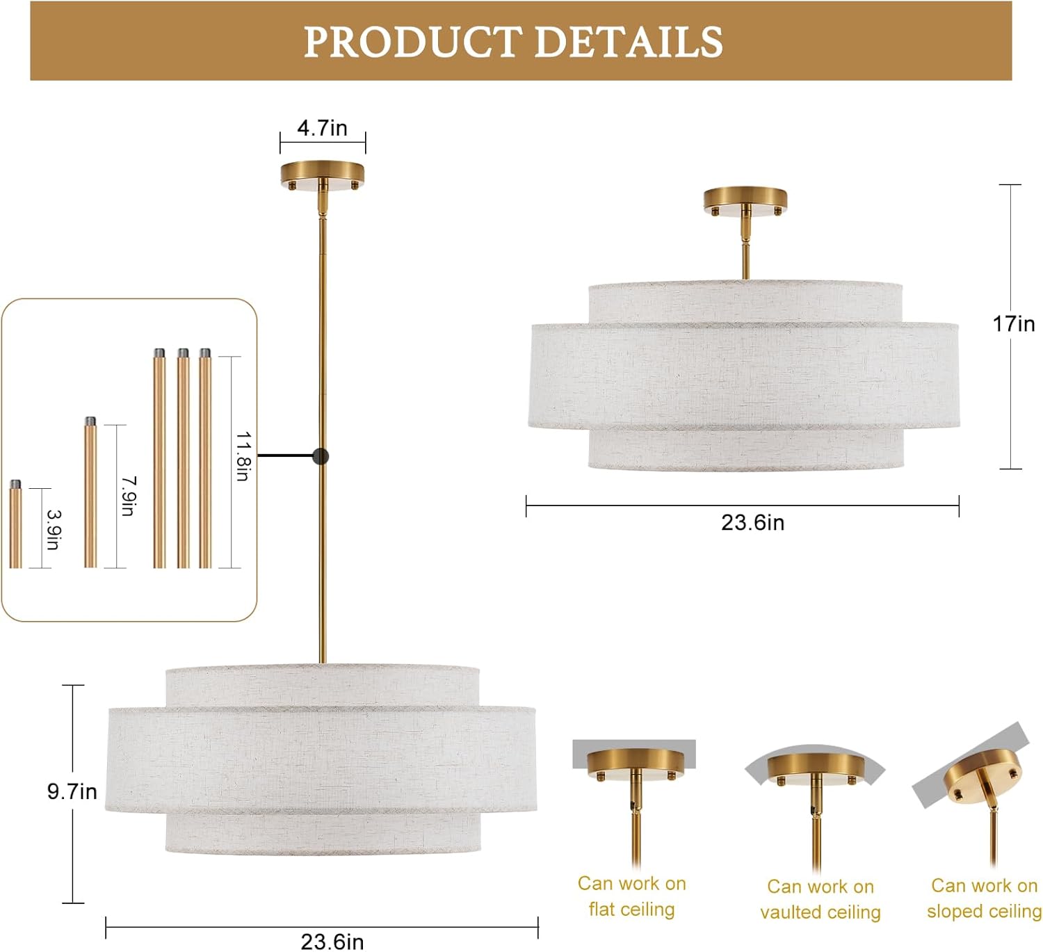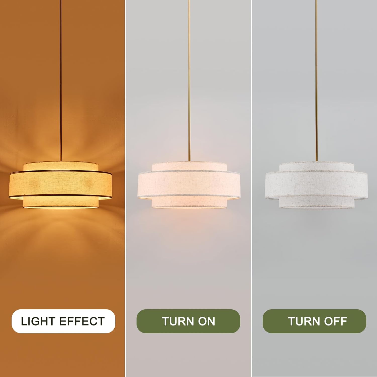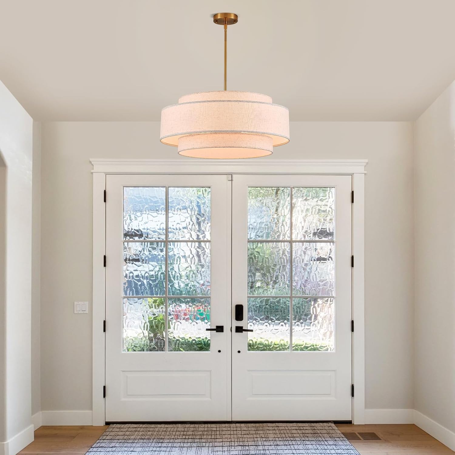 YOMECOO Modern 23.6″ Large Drum Chandelier 6-Lights Vintage Modern Chandelier Light Fixture with Linen Shade Retro Farmhouse Drum Chandeliers for Dining Room, Kitchen Island, Living Room, Bedroom